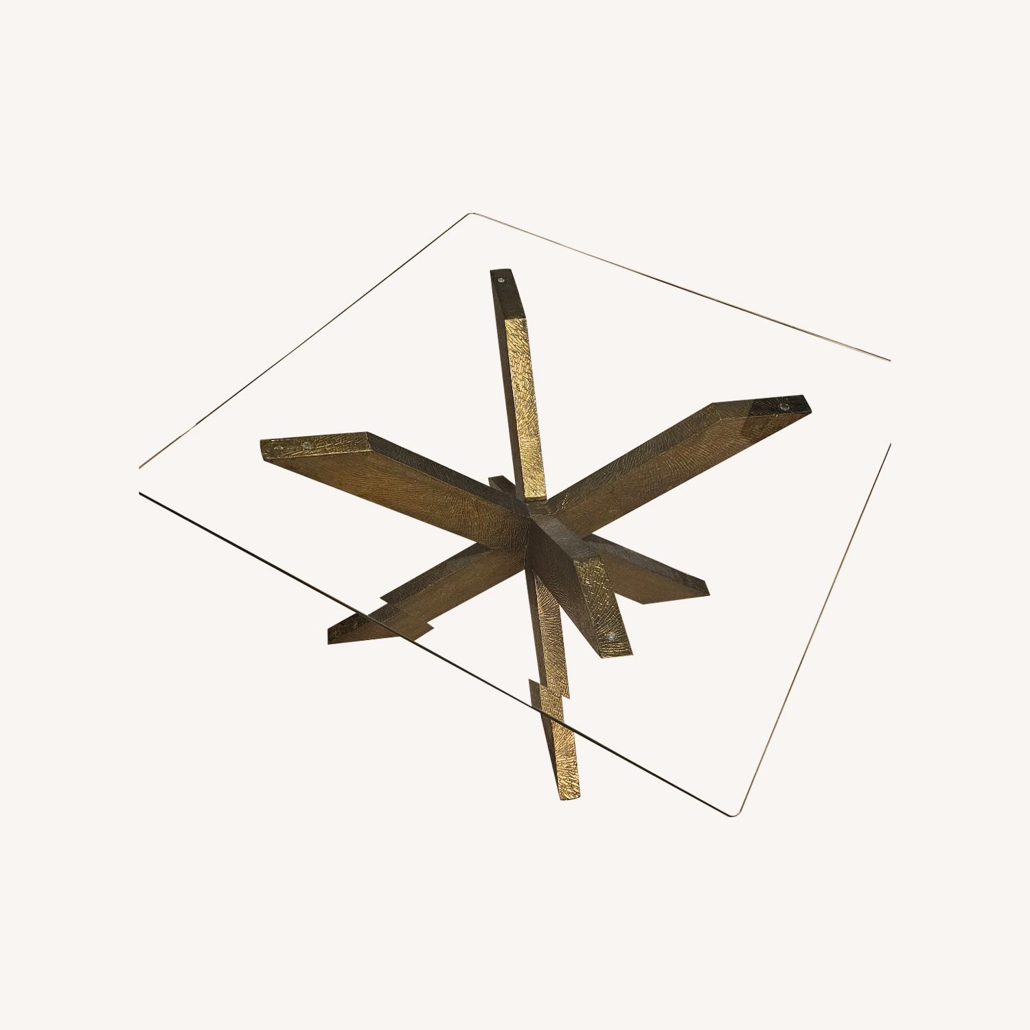 Seller's Notes:Table is in excellent condition. The base is made of wood with textured look of gold plating.