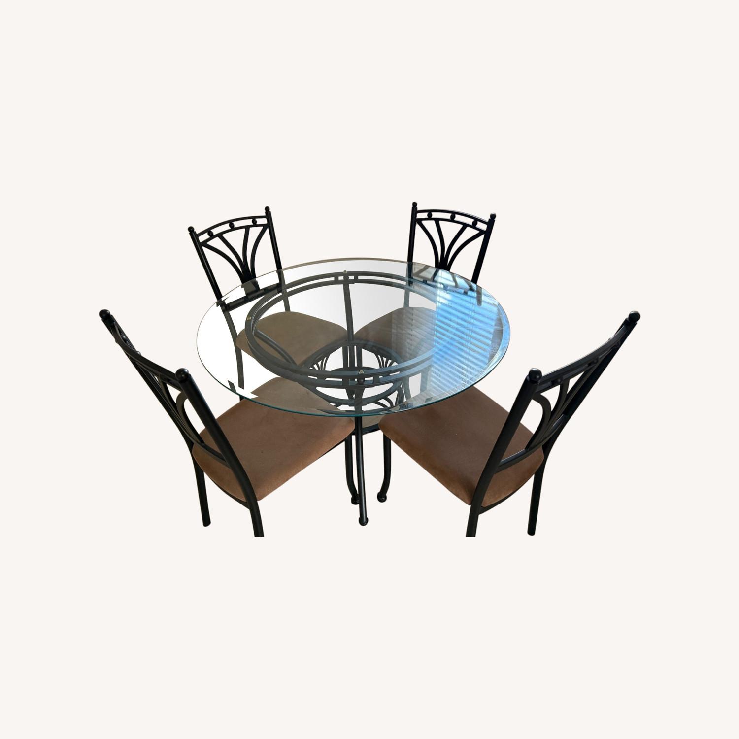 Seller's Notes:Glass table dining set. Like new, no wear and tear or blemishes and rarely used. Great design and comfortable chairs.
