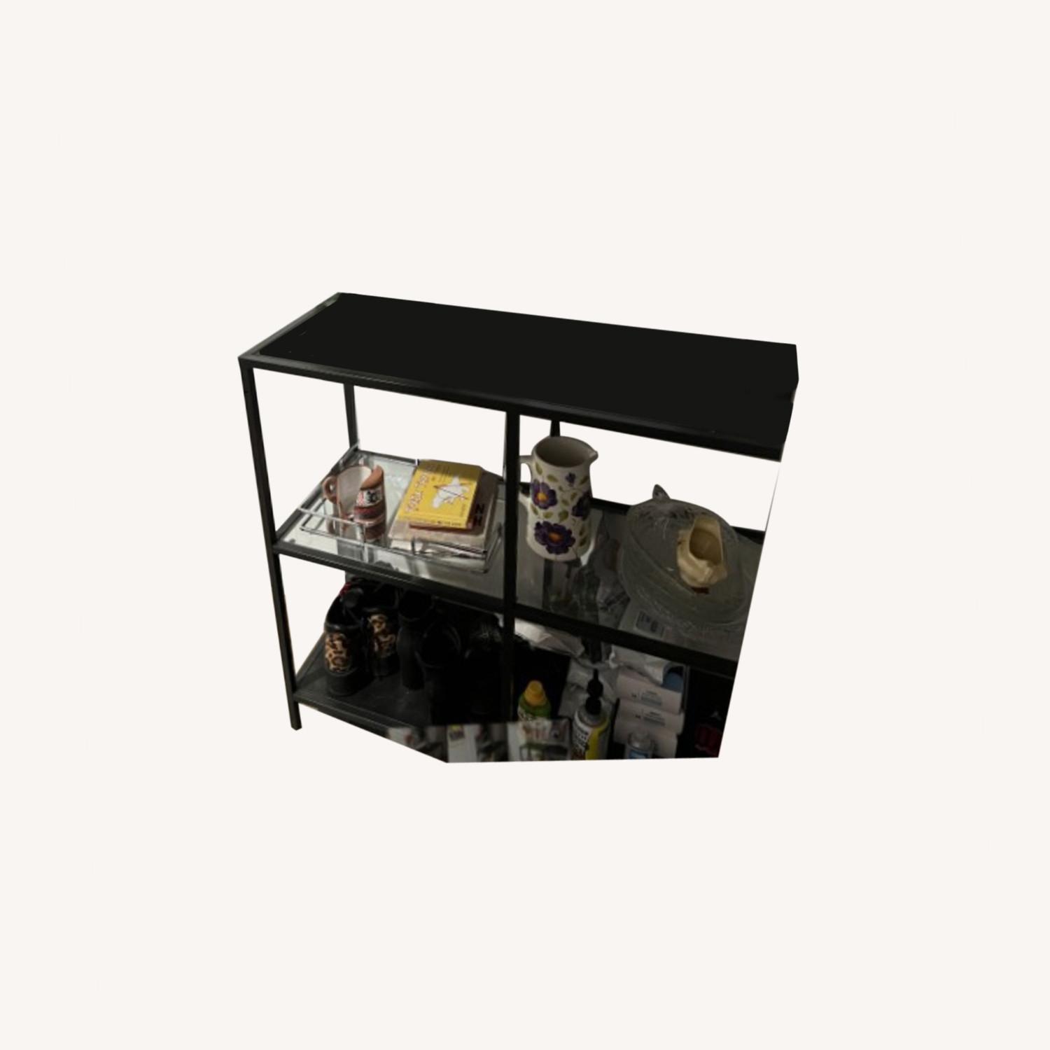 Seller's Notes:Moving to the west coast so selling my furniture. This is a really nice entry way table that has a glass shelf as an accent. It looks quite nice and there's no real damage there's a small scratch on the top but it's not noticeable.