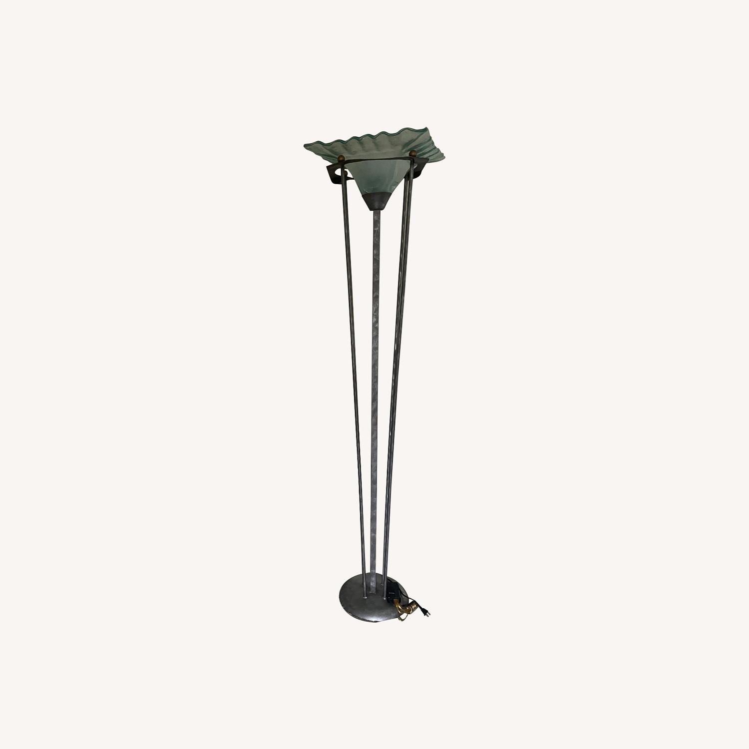 Seller's Notes:Pale Green Glass & Metal Floor Lamp, 6 feet tall. with 12 inch round base, 120V (US Standard), Very good condition, works well