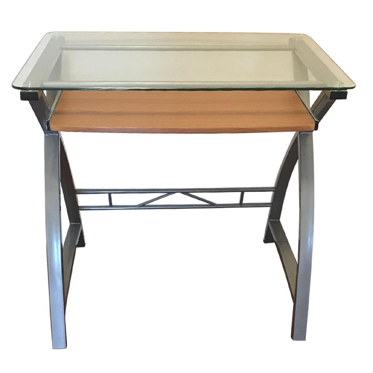Glass & Metal Small Desk w/ Pull Out Keyboard Shelf