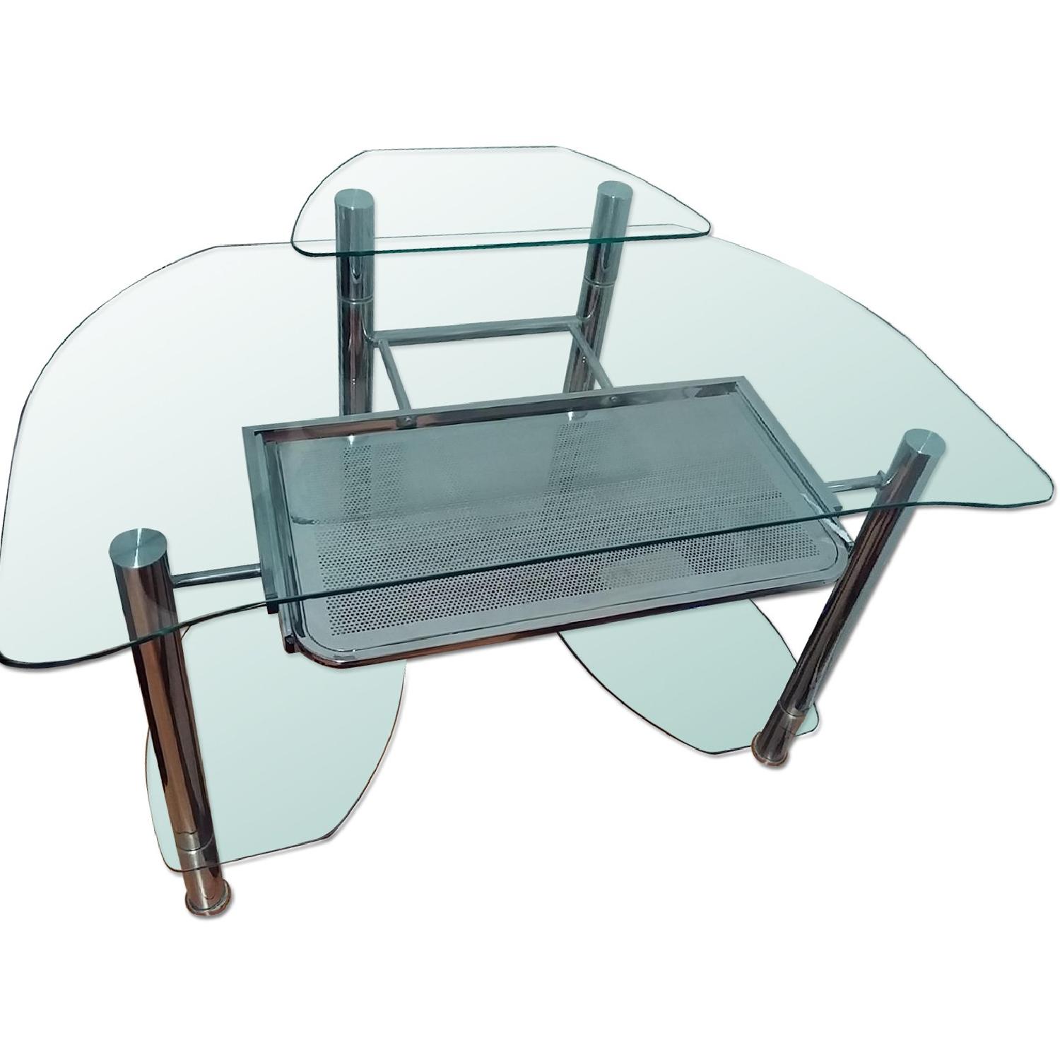 Glass Table w/ Monitor Shelf & Bottom Shelves