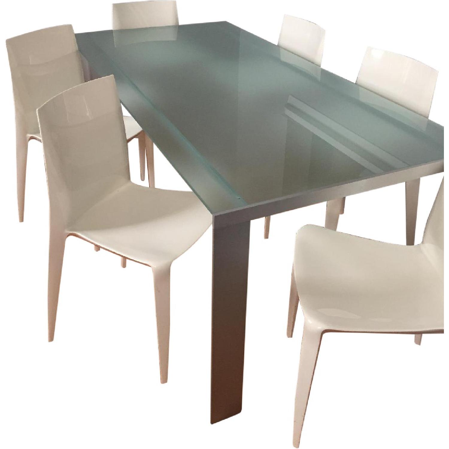 Glass Top Metal Frame Dining Table w/ 6 White Chairs
