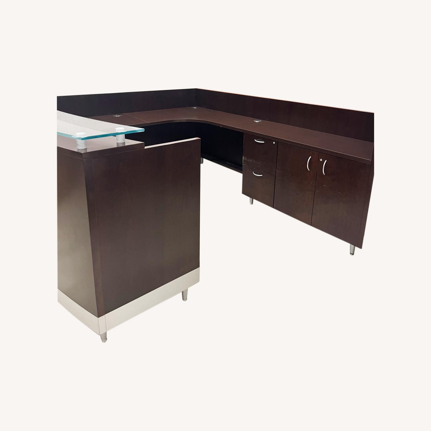 Seller's Notes:Used but in excellent condition—no dents Mahogany Wood, Glass Top Please see image for measurements Pickup only in Bedminster, New Jersey