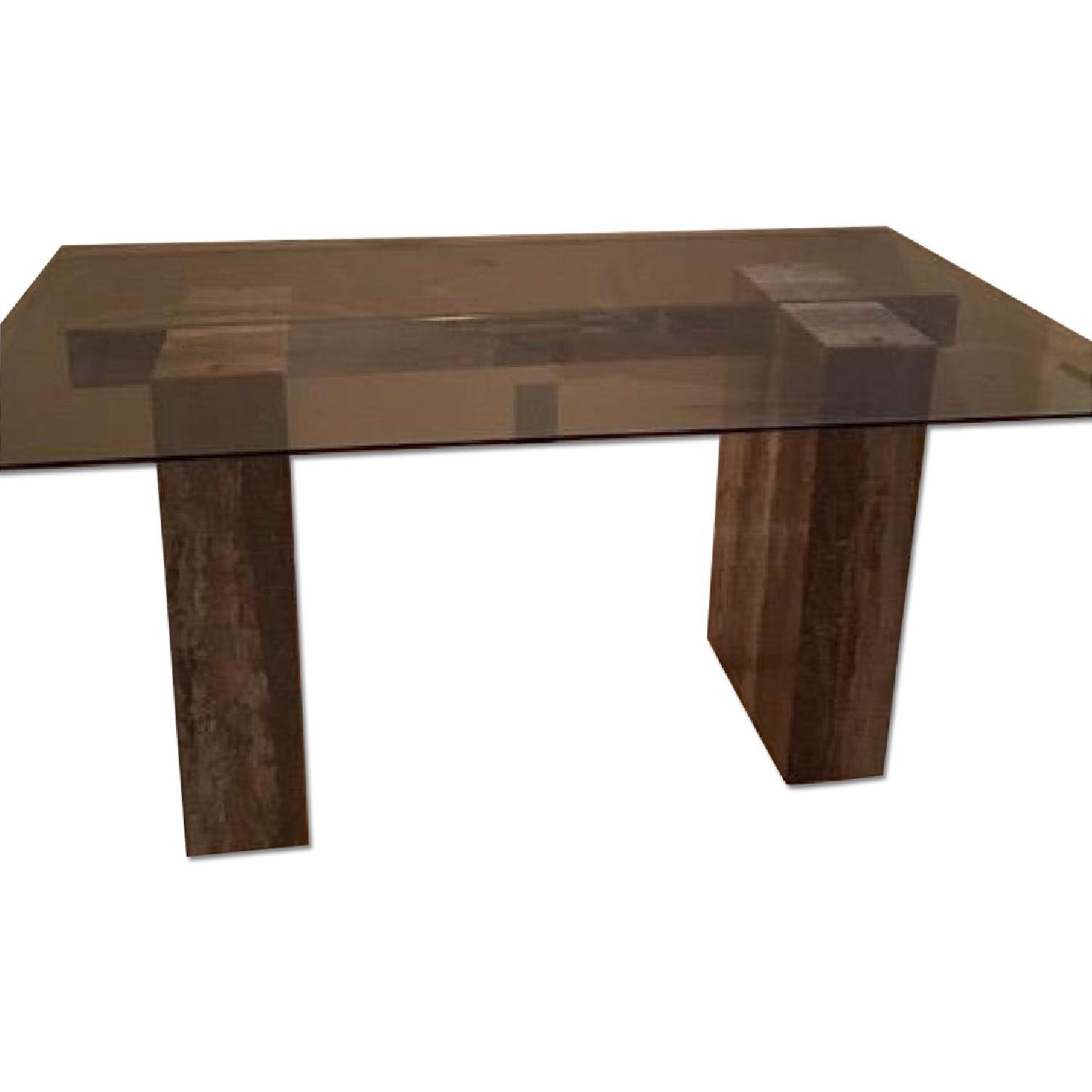 Glass Topped Dining Table w/ Marble Pedestals