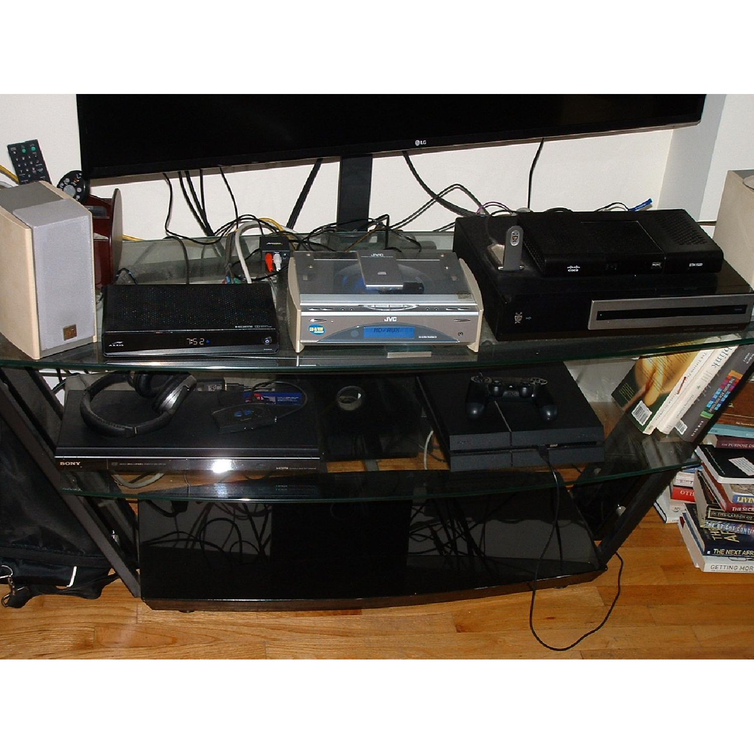 Seller's Notes:Three tier glass TV stand/mount. Mount is height adjustable and swivels to provide perfect viewing angles wherever you sit.