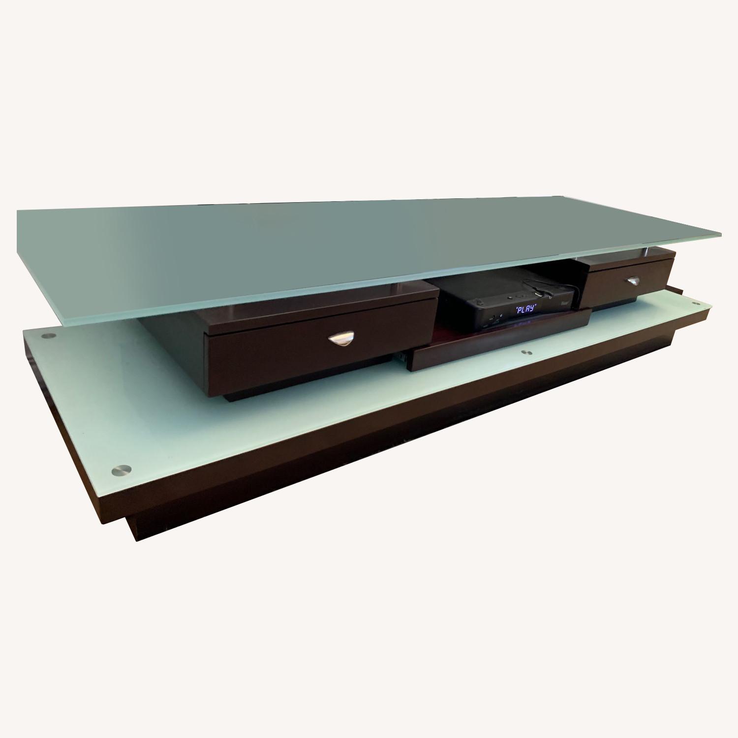 Glass & Wood TV Stand w/ Drawers & Pull Out Tray