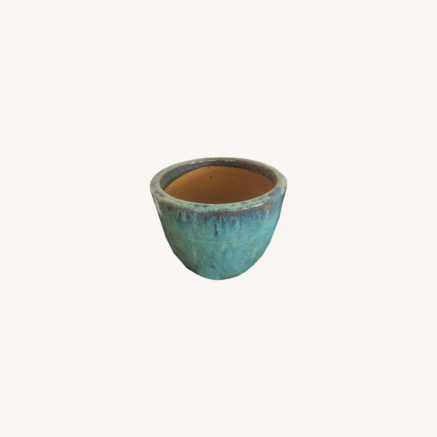 Seller's Notes:I have a total of 5 of these planters. Glaze is beautiful and varied throughout each one. Same aesthetic as Heath pottery 15" Diameter 3 are teal 2 are dark green The listing is priced for 1, add to quantity if you want more Happy to meet if you would like to pick up. I MAY be able to deliver to you for an additional fee