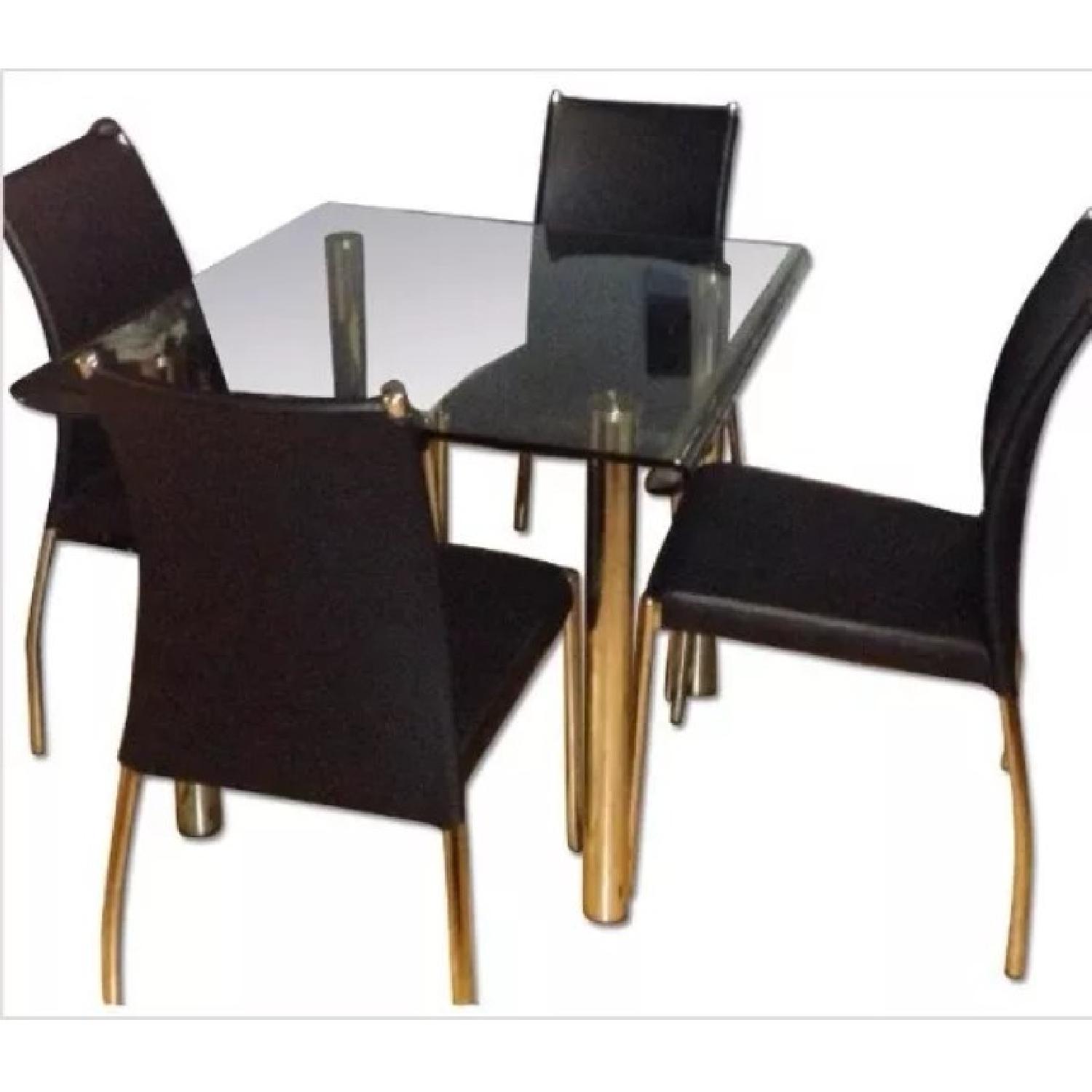 Seller's Notes:I am selling a used modern-looking 5-piece dining set. The chairs have slight signs of cosmetic wear. Here is a detailed description from the store I purchased it from (going price at the store is $569.00): DIMENSIONS AND WEIGHTS Dining Table L: 33.5" x W: 33.5" x H: 29" Weight: 76 lbs. Tabletop Weight: 58 lbs. Base Weight: 18 lbs. Maximum Weight Capacity: 50 lbs. Dining Chair L: 16.5" x W: 19" x H: 34.5" Weight: 13 lbs. (each) Seat Depth: 16" Seat Height: 18" Maximum Weight Capacity: 250 lbs. FEATURES AND BENEFITS Color: Black Fabric: Leather-look Brand: Global Furniture Usa Dining set pieces 5-Piece dining set includes dining table and 4 dining chairs, so you can fill your dining room or eat-in kitchen with furniture you love while saving time and money Tubular chrome frame material Dining set frames are carefully crafted of tubular chrome for a sleek look and strong, durable foundations that are meant to last Tempered-glass tabletop Tempered glass is significantly stronger than regular glass, and it's extra safe around kids and pets because it doesn't break into sharp pieces when it shatters Padded, leather-look seats and backs Dining chairs feature foam-padded seats and backs covered in leather-look fabric for a luxe finishing touch and extra comfort
