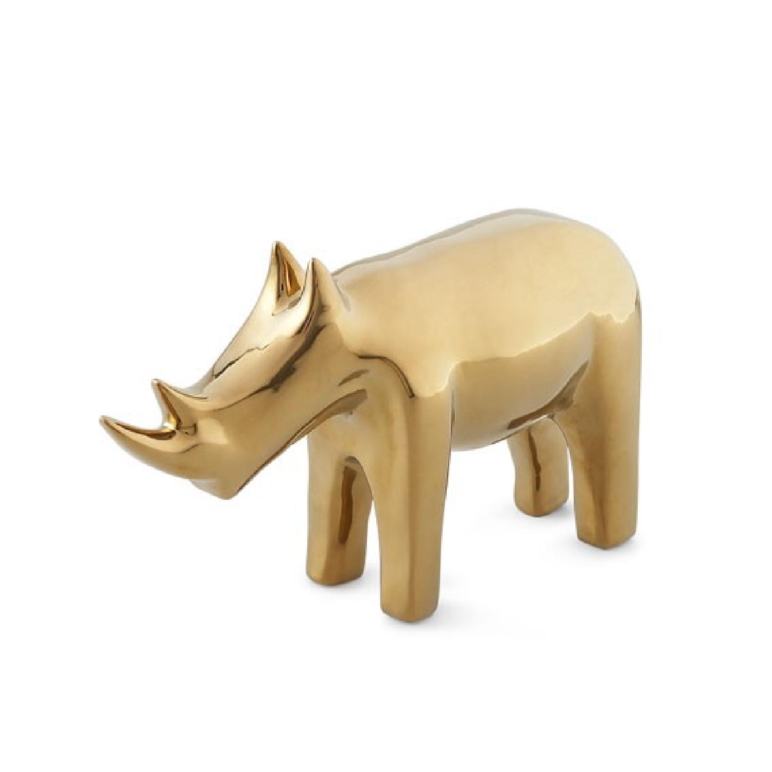Seller's Notes:Clean, restrained and elegant, our metallic animal sculptures recall an era of glamorous Safari expeditions, circa 1900. Gold finished ceramic with electroplated glaze. We have a delivery and professional assembly service for the five boroughs of the NYC area, ask for our nationwide delivery and professional assembly service for further assistance. Delivery and assembly fee subject to destination of goods.