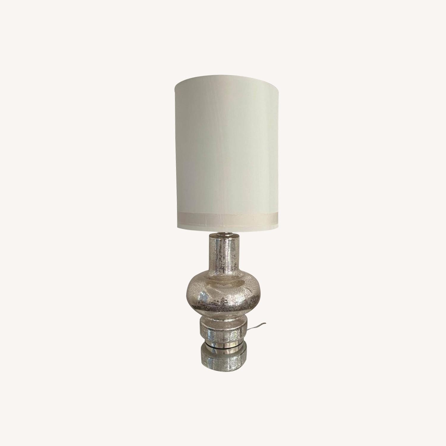 Enjoy the Inner Light Lamp in your home today! Unique and practical are not words you often hear together...but they suit Global Views' Inner Light Lamp to a T! The lamp features a beautiful antique mercury glass body, a frosted glass inner cylinder, and a three-way switch that allows for multiple uses. One click for the base as a night light, two clicks for the top light, and three for the both the base and top to light. Clean lines and soft design make it a welcome piece to any style of decor. Holds a 100W "A" lamp bulb in top socketHolds a 7W candelabra bulb in base8' clear silver cord, 3-way switch at socket, switch cycles top only - base only - bothRound drum hardback shade covered in ivory silkThe double-thread nature of the silk makes it elegant and durable. Slubs and irregular threads on the shade are genuinely natural and distinctive, with slight variation from piece to piece.