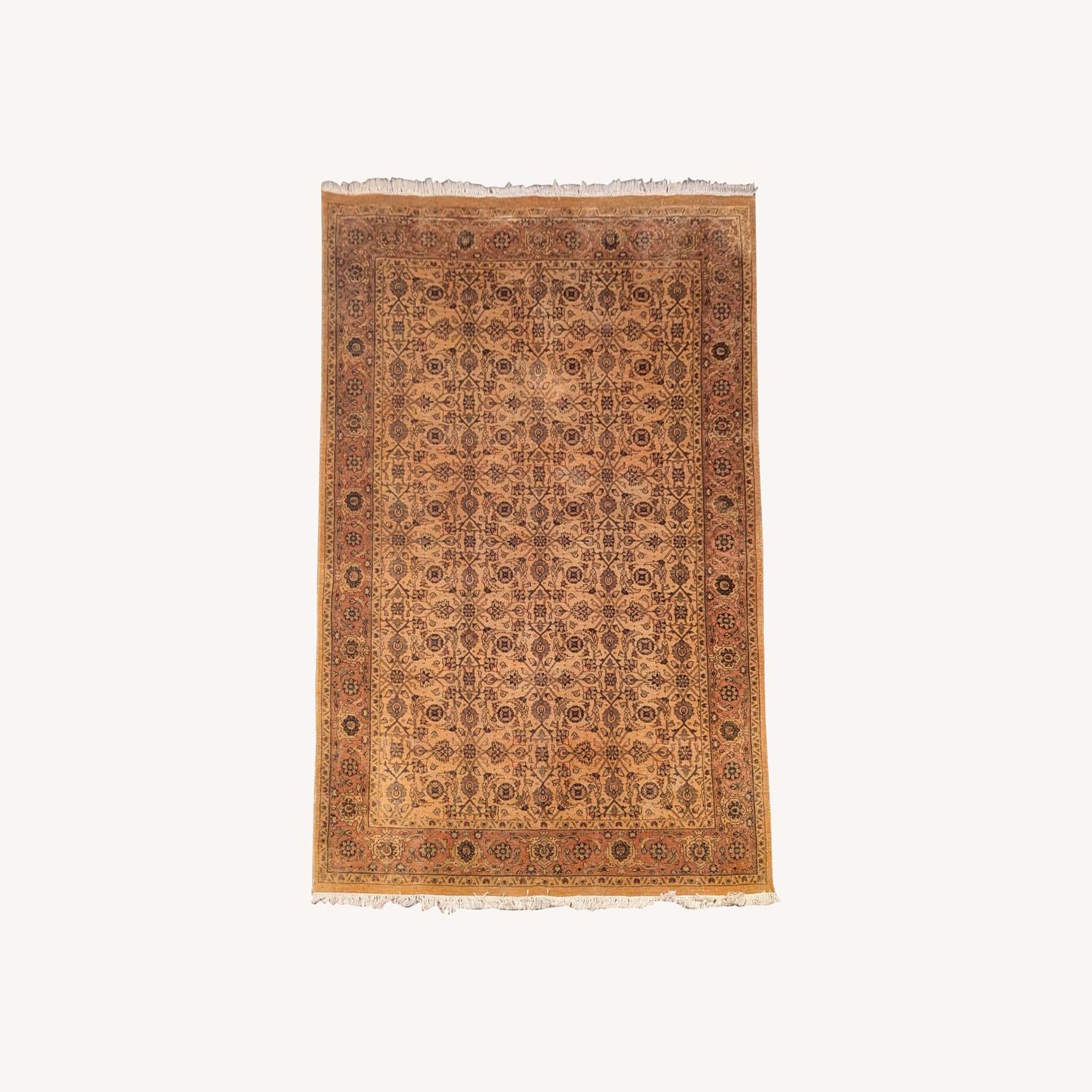 Seller's Notes:A vibrant, distressed, handmade wool rug. We purchased this piece from a rug dealer in Jaipur when we were traveling in India in 2019. It's an unusual gold color, and has been distressed to give it a vintage look. There is some minor fading from spot cleaning. The short fringes are in very good condition.