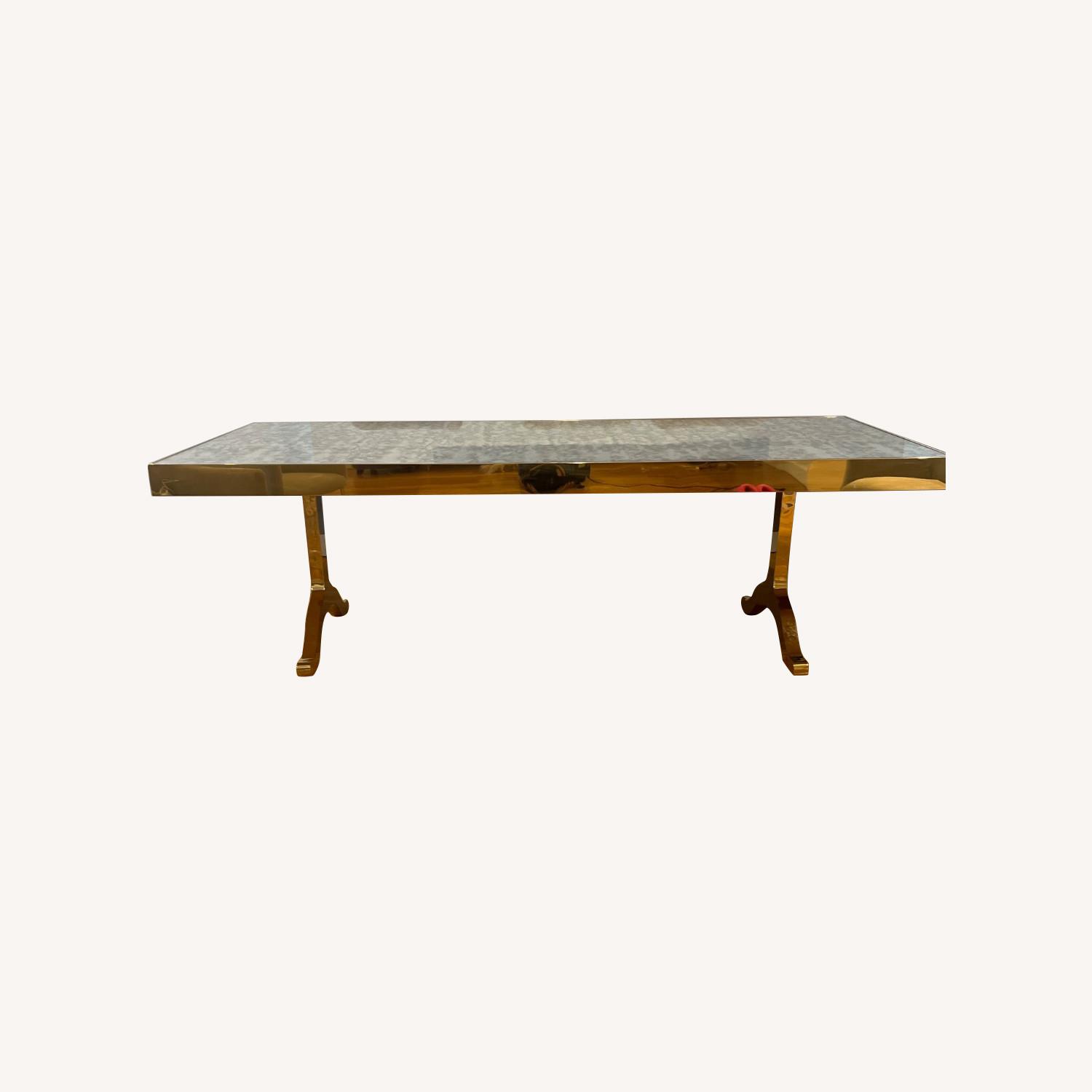 Seller's Notes: This table is lovely can be used with traditional or contemporary chairs. It’s sleek and clean looking. It’s great when there is too much wood in a room. It is a statement piece. I like it because It brightens a room instead of wood that Doe’s the opposite. I’m moving.