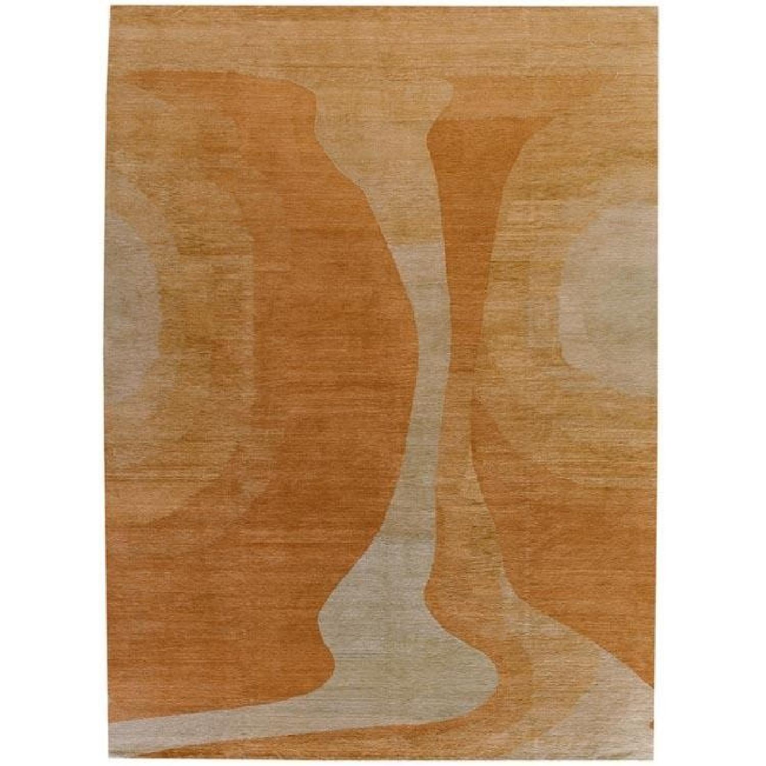 Seller's Notes:“Creeks- Copper” retails at Warp & Weft for over $10,000. It is a stunning 8’ x 10’ rug, made of 100% hand carded and hand spun Himalayan wool, hand-knotted in Nepal at 100 knots per square inch, and washed and finished in Switzerland for exceptional lanolin oil preservation. It's distributed by Good Weave, a company that promotes fair trade in Asia and fight child labor. I won this carpet at a charity event, it never left the store. It doesn't fir my apt. http://www.goodweave.org/child_labor_campaign/rug_carpet_events/cid=22?user_events_pastPage=2 Here’s the link to the rug http://www.warpandweft.com/modern/concepts-1/creekscopper