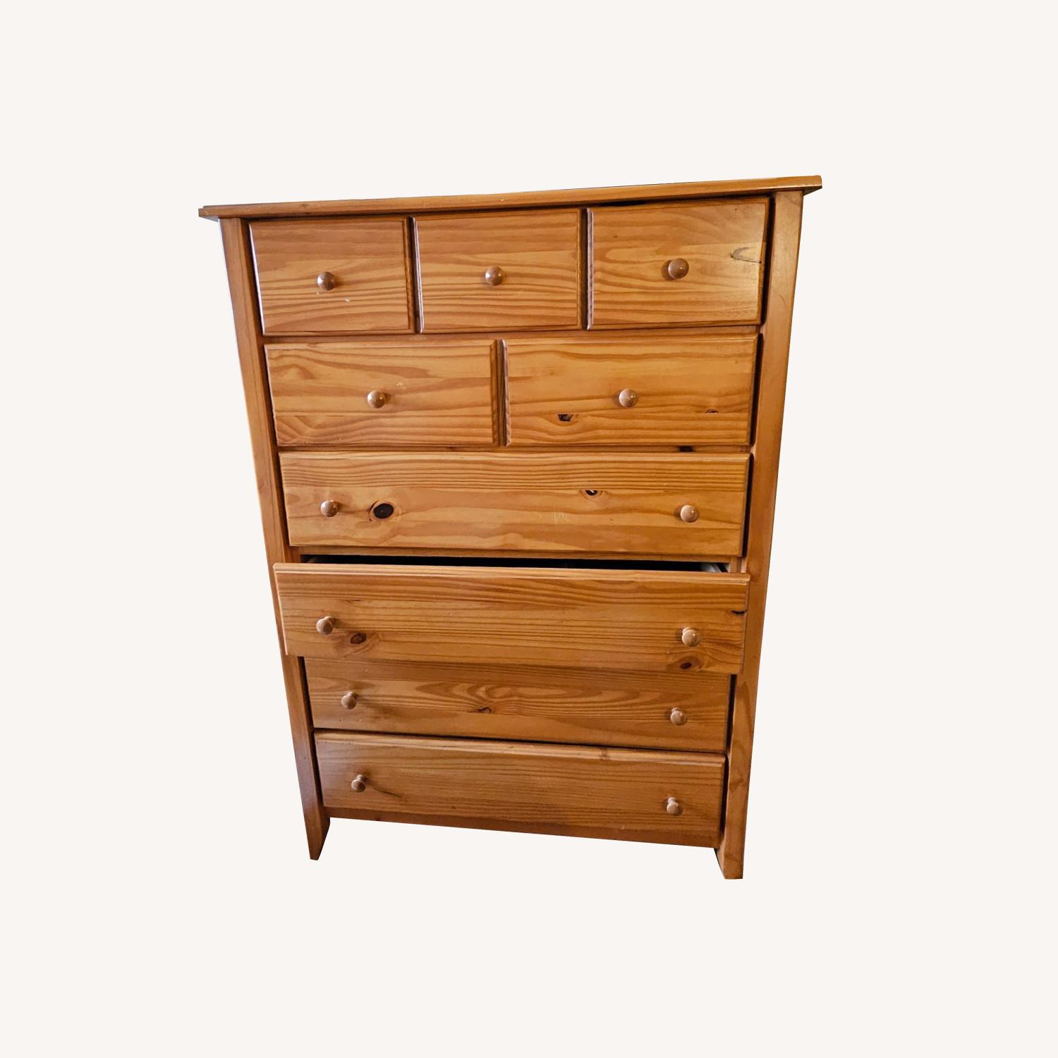 Seller's Notes:Beautiful solid pine dresser from Gothic Cabinet Craft. Features 8 spacious drawers. Perfect for clothing, linens, or extra storage. The natural wood grain gives it a warm, rustic look that fits with almost any decor. Made of real solid pine wood (no particle board!) Deep drawers offer tons of storage Classic, sturdy design Well-made piece that will last for years