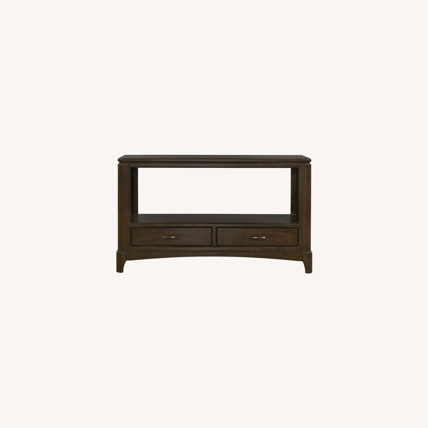 Seller's Notes:Our Gramercy sofa table offers a subtle blend of chic style and practical use. Two drawers and a fixed shelf offer ample storage space, while dust proofing, English dovetailing and full-extension side guides contribute to the quality of this piece. Handsomely book-matched cherry veneers in a dark sable finish and champagne hardware contribute to the simplicity of the Gramercy aesthetic. Multi-step, book-matched cherry veneer with a dark sable finish Champagne hardware Two drawers One fixed shelf Full-extension side guides Soft drawer closing Dust proofing English dovetailing Constructed from hardwood solids Colors may vary slightly on different monitors