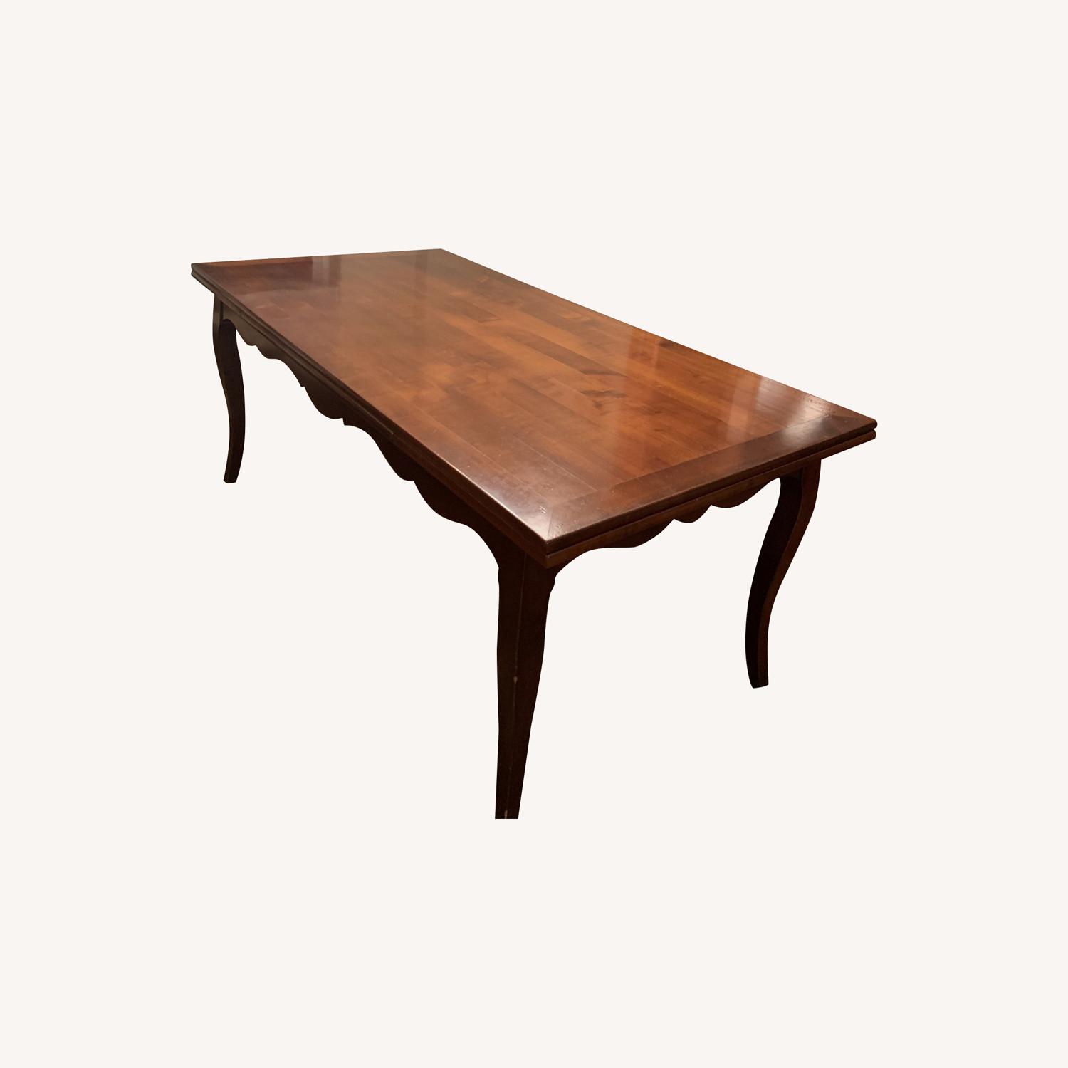 Seller's Notes:Solid cherry wood Grnage dining tble a few minor nicks expands to 120" with self contained extentions.