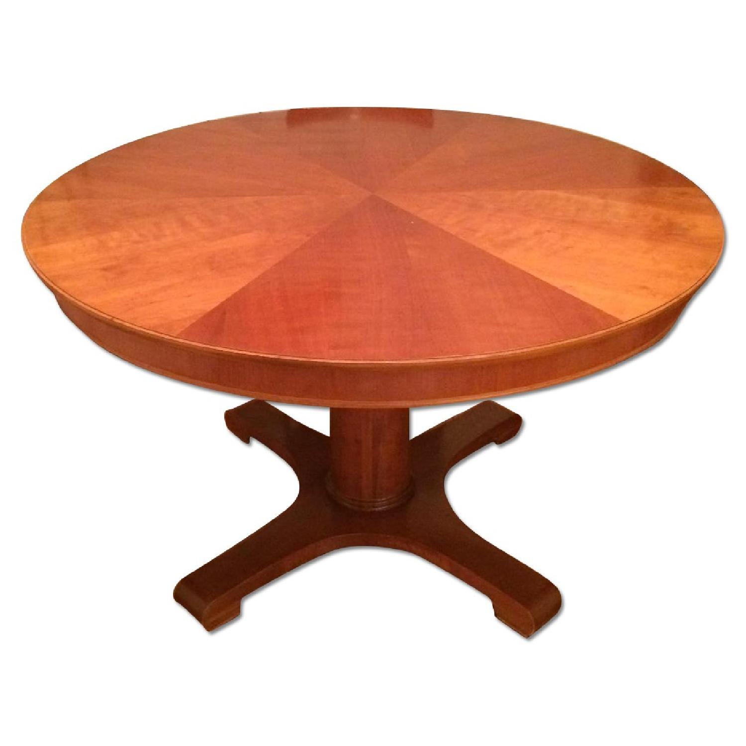 Seller's Notes:Bought the table and chairs at the grange furniture outlet 8 years ago. Table is solid wood and very high quality. Comes with 2 inserts and can extend up to 7 feet. When closed it is 4 feet diameter. 6 Chairs are cast iron with weaved bottom. One chair has slight damage to the weaving but this can be easily repaired at furniture shop. Link to company website - http://www.grange.fr/en-US/our-products.aspx?l=dining-table&cat=1811&pCollection=1F&pStyle=