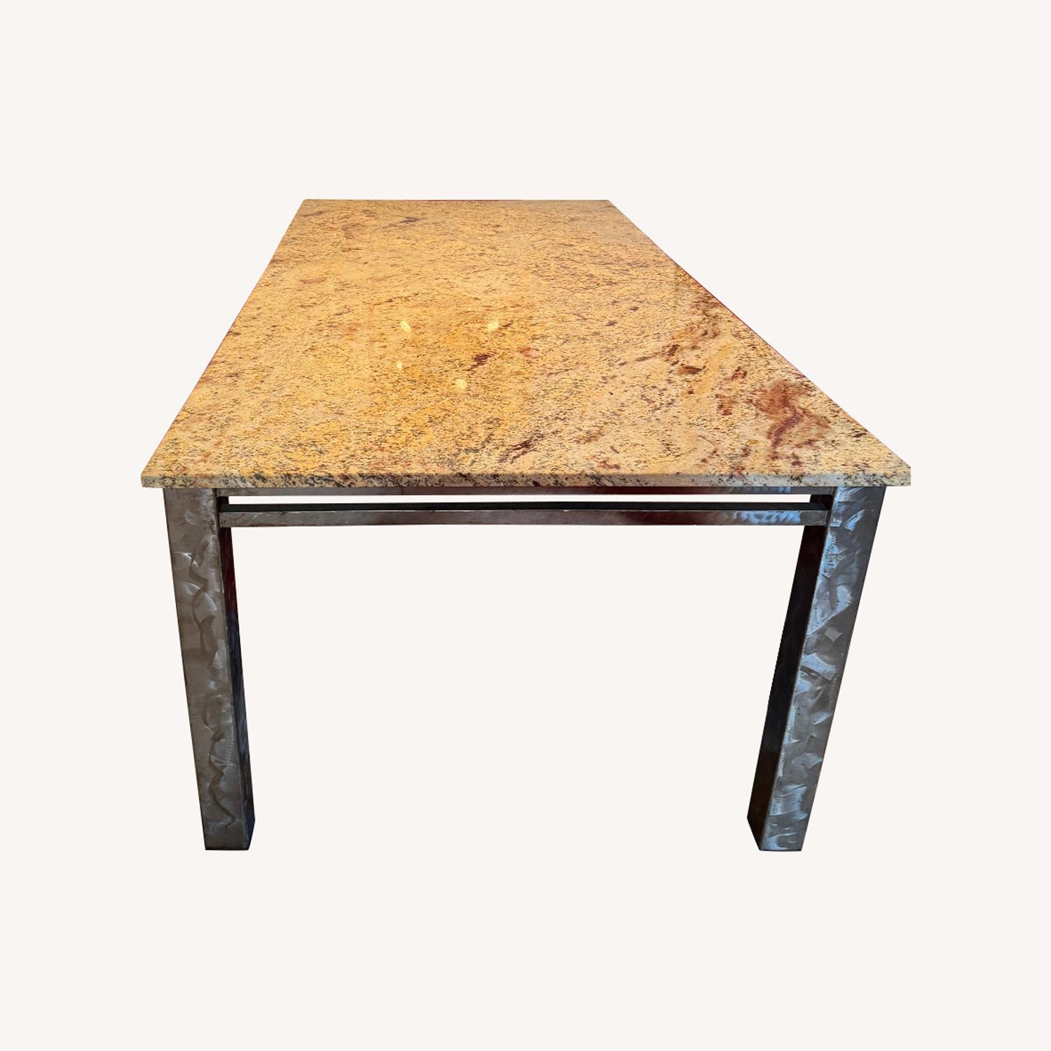 Seller's Notes:This piece was custom made in hand-picked granite and stainless steel in a parsons table style . It is in beautiful shape. We are moving and can't bring it with us as it is extremely heavy and too large for our new space. The price is low - as listed - for anyone who will come pick it up in Los Angeles at their expense.