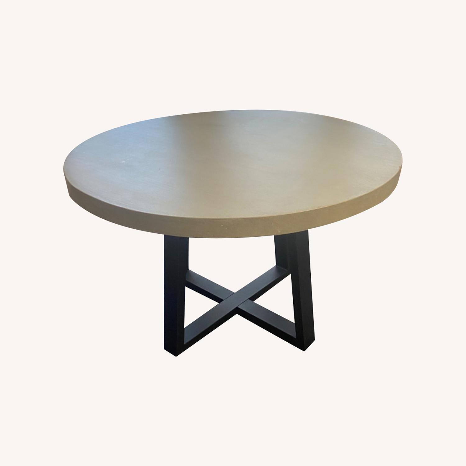 Seller's Notes:Gorgeous gray concrete 47 inch round table with black aluminum legs. 31 inches tall. Can fit 4-6 chairs. Small chip in one small area but barely noticeable. Heavy and sleek / industrial style. Can be used as a kitchen / dining table or even for an entry way. Purchased in Manhattan 2014.