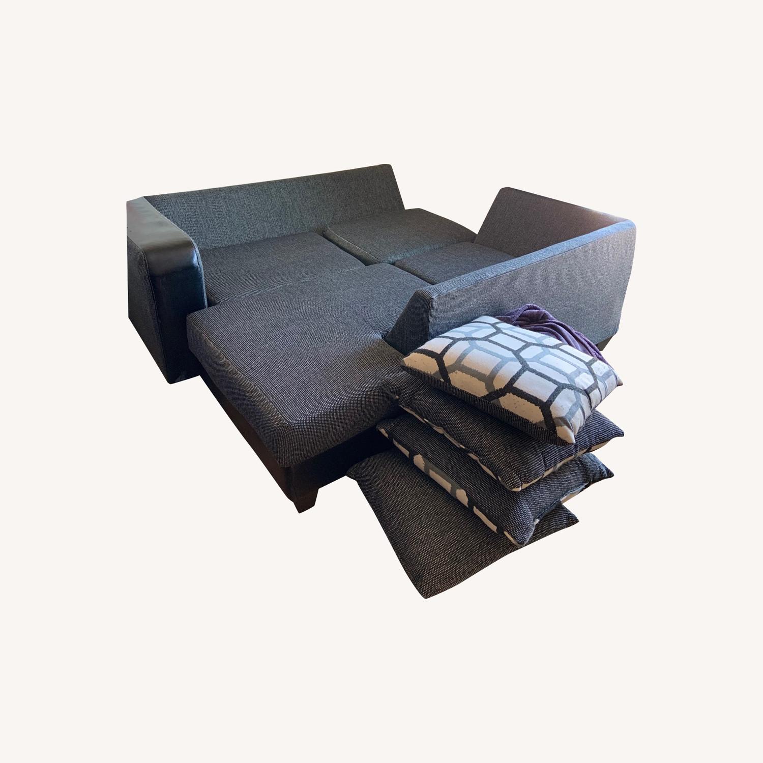 Seller's Notes:Love this sectional sofa...only selling as we are moving to a new place and downsizing! Comes with 7 pillows (4 reversible)! SUPER comfortable!!! Has minor scratches on arm and one of the legs is still loose once it screws in...but other than that is in great shape