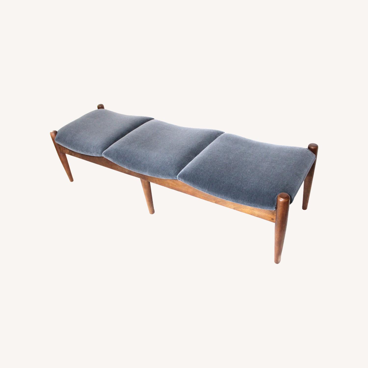 Gray Mohair Velvet Low Bench - Mid Century Style