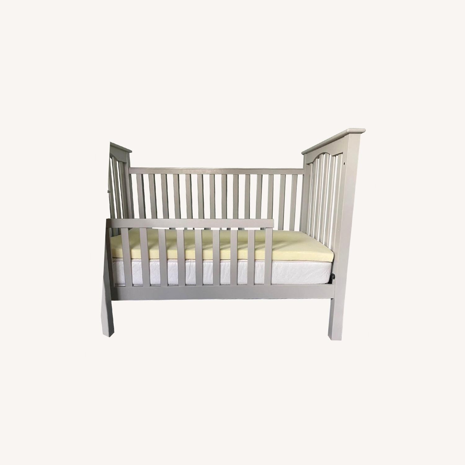 Seller's Notes:Excellent condition (rarely used-ha) Pottery Barn Crib. Comes with waterproof crib mattress, pottery barn safari crib sheet, dark blue skirt, safe crib bumper (for older child). Also comes with toddler conversion rail and toddler tempur-pedic mattress topper (& waterproof cover). Price firm. Must pick up. Smoke and pet free home.