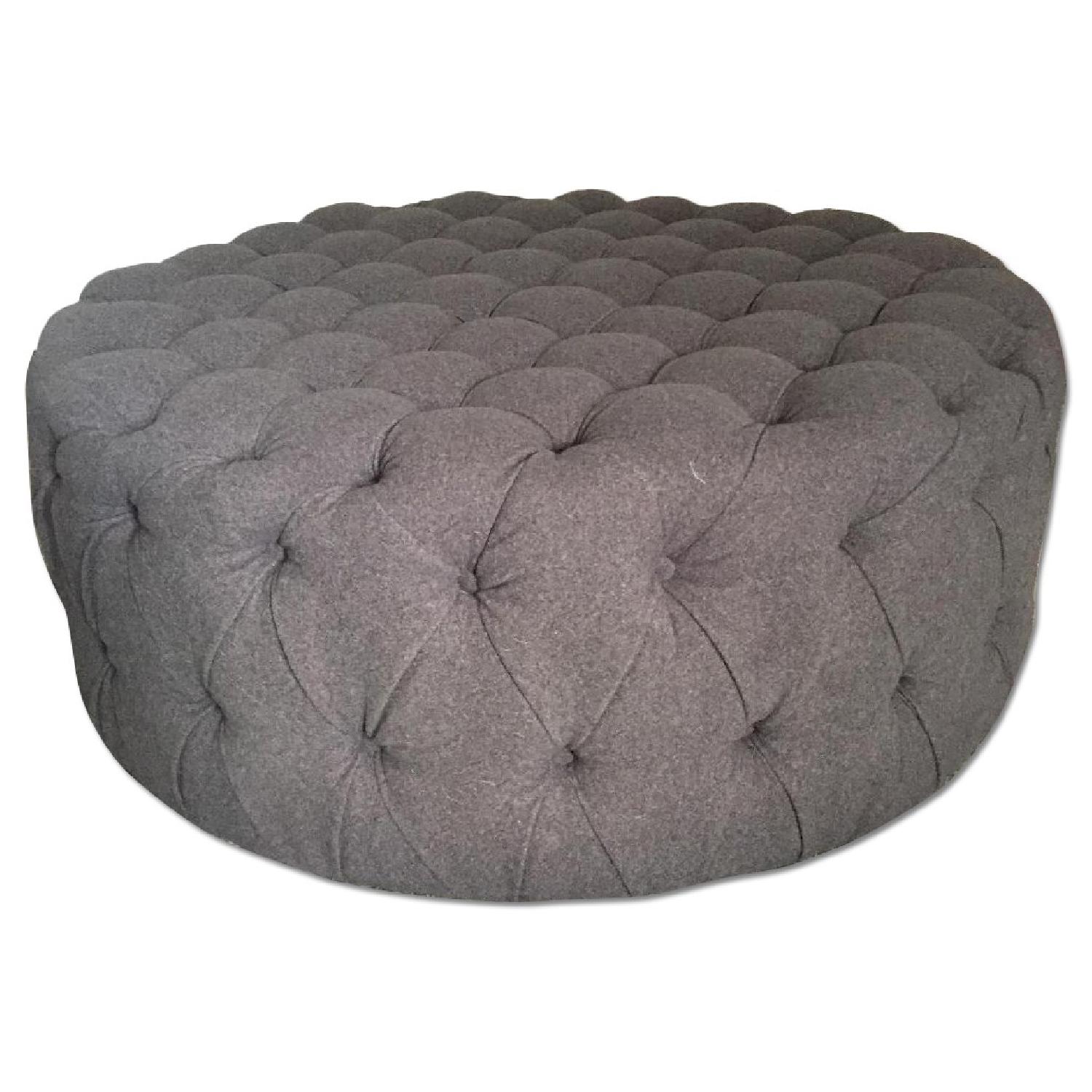 Seller's Notes:Round gray tufted ottoman can also be used as a coffee table. 37" in diameter x 15" high