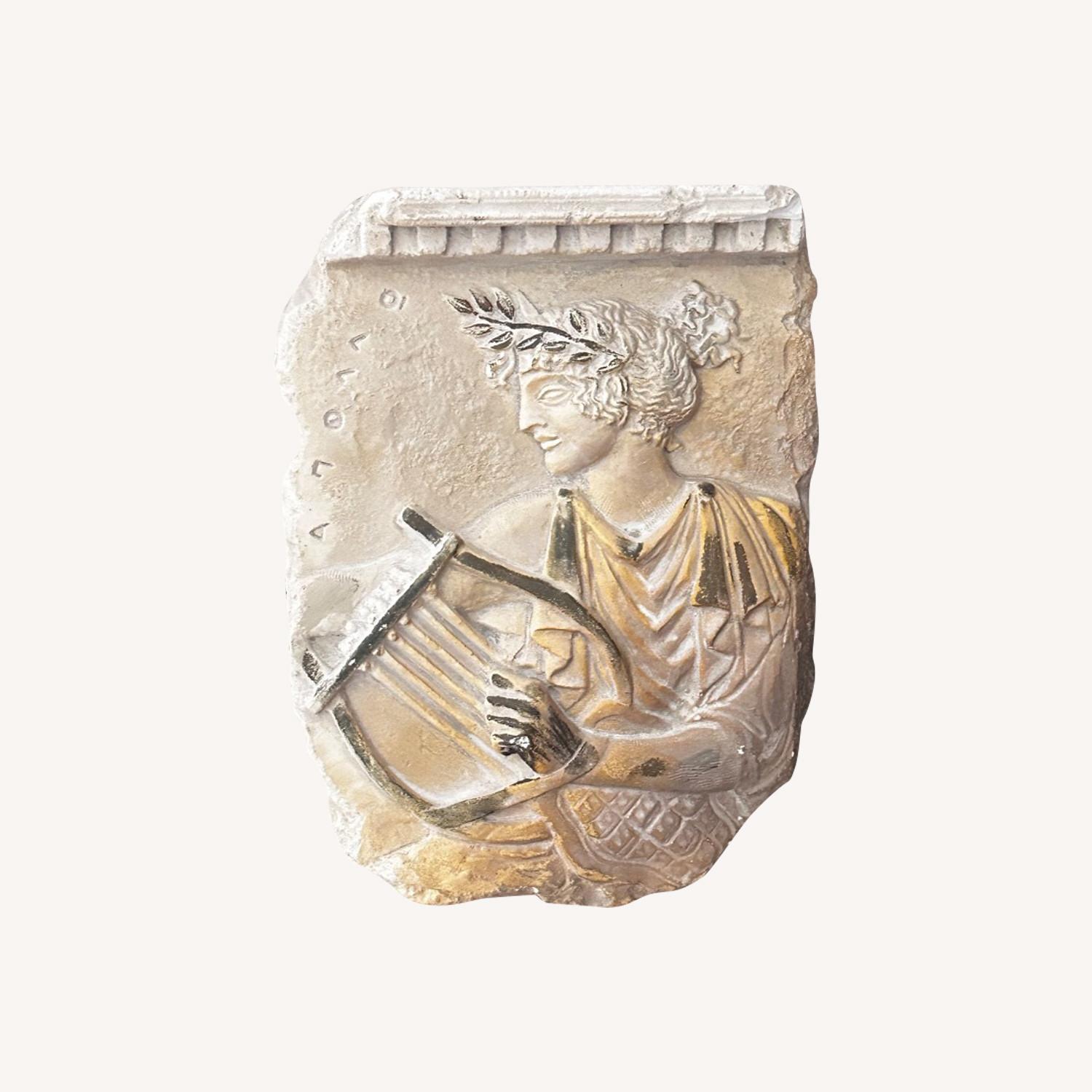 Seller's Notes:One wall hanging, the Grecian man playing a Lyre is a certified museum piece, the larger wall hanging is a Grecian bath And the painting is an antique oil painting , by Perez. There are cracks in the oil painting on the trunk of the tree, but it looks like it was meant to be there.