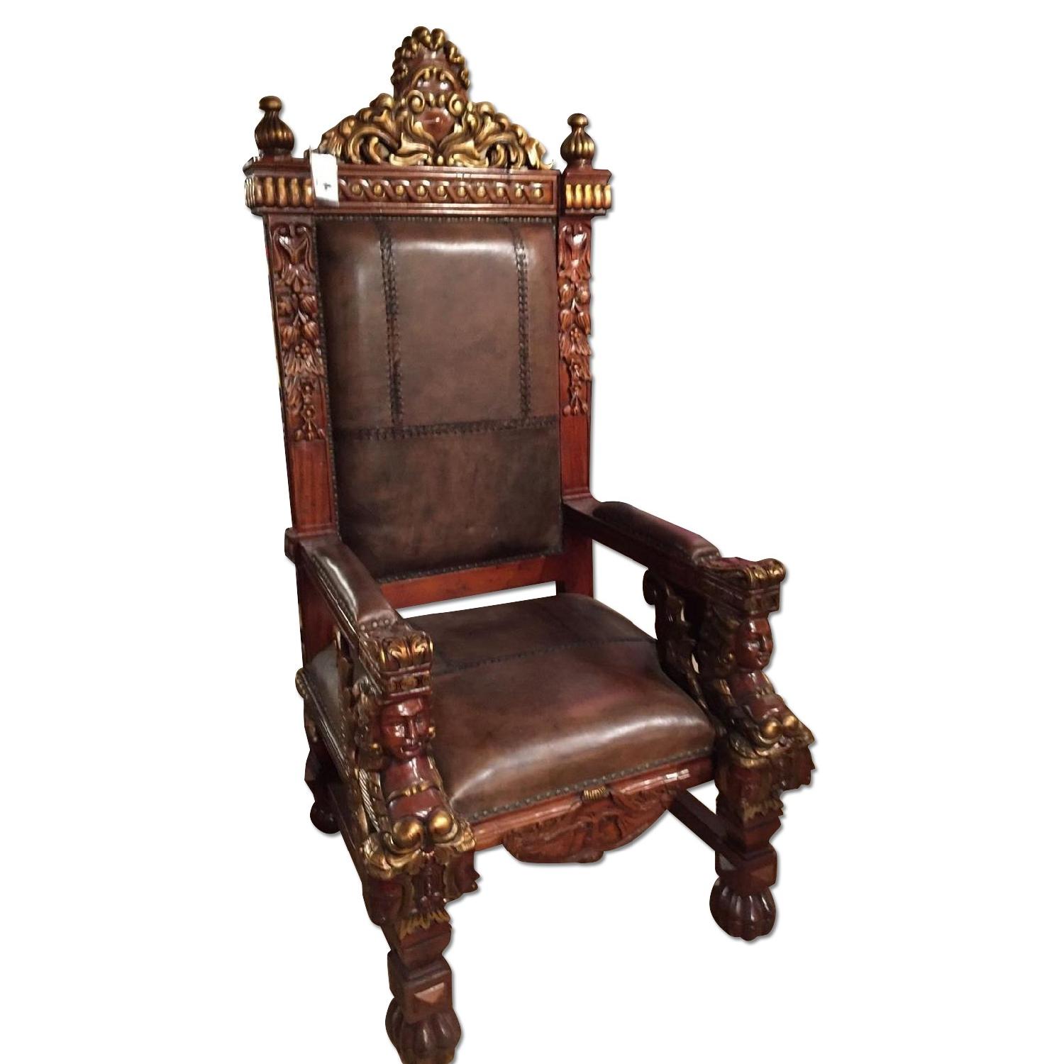 Greek King Head Carved Wood Chair