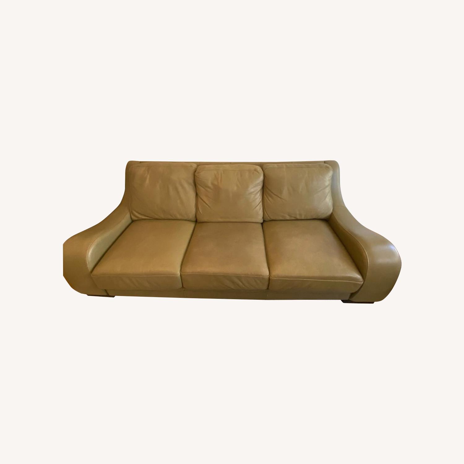 Seller's Notes:I wish I could keep this sofa, but it won't fit in my new place! It's been very well cared for, but has normal signs of use and has worn beautifully since it's leather. There is a scuff at the top (pictured) from when I originally moved it in. It's solid wood and leather, and was originally $3500+taxes and shipping from Omnia.