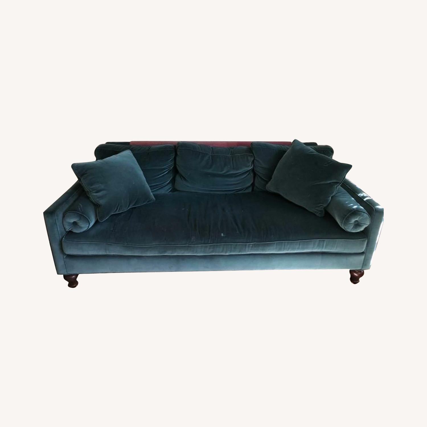 Seller's Notes:Beautiful green velvet sofa with down pillows. It was custom made - some staining that can be easily cleaned from general wear and tear. We are moving abroad so priced to sell!