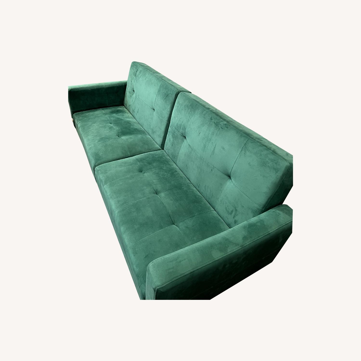 Seller's Notes:Moving to a bigger place. Selling this green velvet sofa bed 3 seater. Pick it up at Flatbush