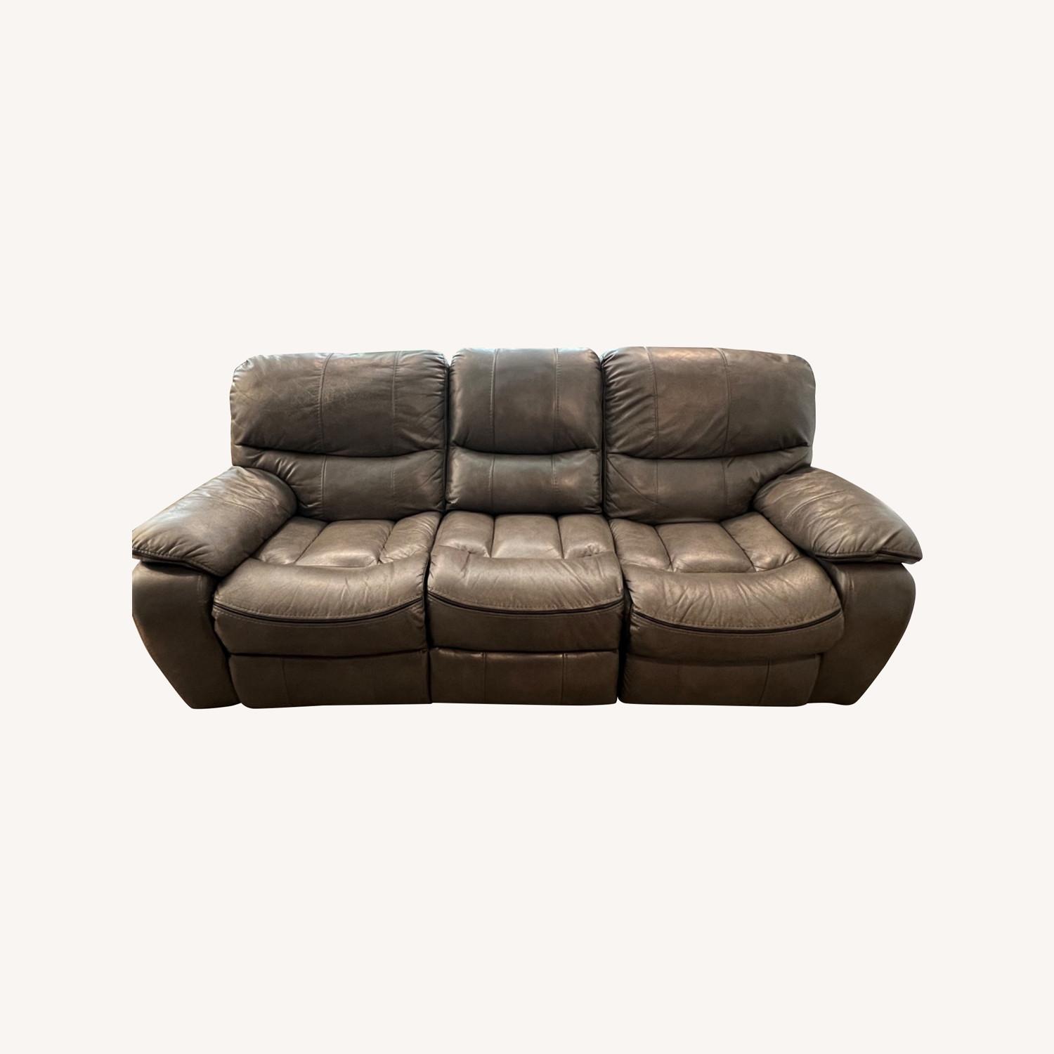 Seller's Notes:This couch has been with us for about 4 years now. Still in great working condition. Electric recliner works great. There are some more loved spots (minor cracking) but from a distance is not very noticeable. The middle seat back folds down to offer an arm rest with cup holders. Perfect for movie nights!