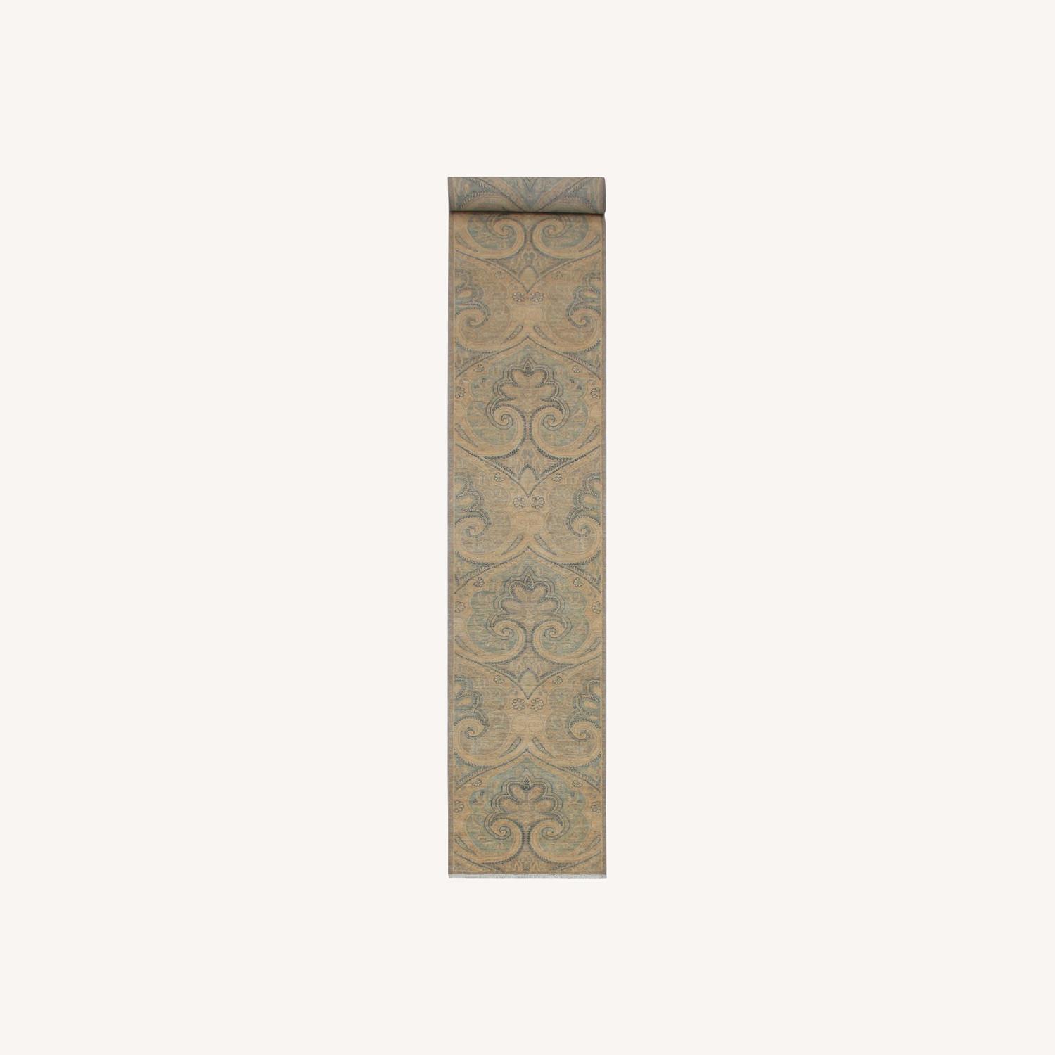 Seller's Notes:"Enhance the ambiance of your home with this magnificent Persian-influenced Turkish hand-knotted rug made by skilled artisans capable of creating the most exceptional vegetable dyes and hand-spun wool. This exquisite handmade rug is a one-of-a-kind Kafkaz, otherwise identified as Chobi, Chobi Peshawar, Oushak, or Ziegler rug. These handmade rugs are crafted in Pakistan utilizing superior-quality wool imported from Australia, New Zealand, and Korea in two types of weaves: the Persian weave and the Mori weave. This rug is meticulously crafted by hand using the finest natural vegetable dyes extracted from local plants. The artisans use a blend of hand-spun local and fine merino wool, resulting in a rug with a compelling texture, higher lanolin content, and longer staple. The artisans occasionally incorporate natural or artificial silk into the pile to enhance specific motifs. The finished product is an awe-inspiring flawless design execution and an understated palette that exudes elegance. Contemporary rugs draw inspiration from antique Persian designs and feature modern motifs with vibrant color tones. Hand-knotted with all-natural dyes, resulting in a unique abrash effect and subtle color variations in the pile. rugs are known for their stunning and vibrant colors, achieved through a process inspired by antique methods. The rug's pile is meticulously trimmed to a moderate thickness and then stone-washed and sun-dried, resulting in a natural sheen and pleasing color tones. Transform the ambiance of your room into a luxurious haven with this gorgeous rug featuring a beautiful color palette. This stunning rug features an intricate oriental design that showcases royalty and seamlessly complements any decor. Its hand-knotted construction and natural fibers provide a soft and comfortable feel underfoot, making it the perfect addition to any room. Product Details Rug Size: 2'7'' x 19'2'' Material: 100% Hand-Spun Vegetable Dyed Style: Traditional, Oriental, Kafkaz, Chobi, Oushak Colors: Grey Red Tan Green Weave Type: Hand-knotted, Handmade Pile Height: 0.25 - 0.5 inch "