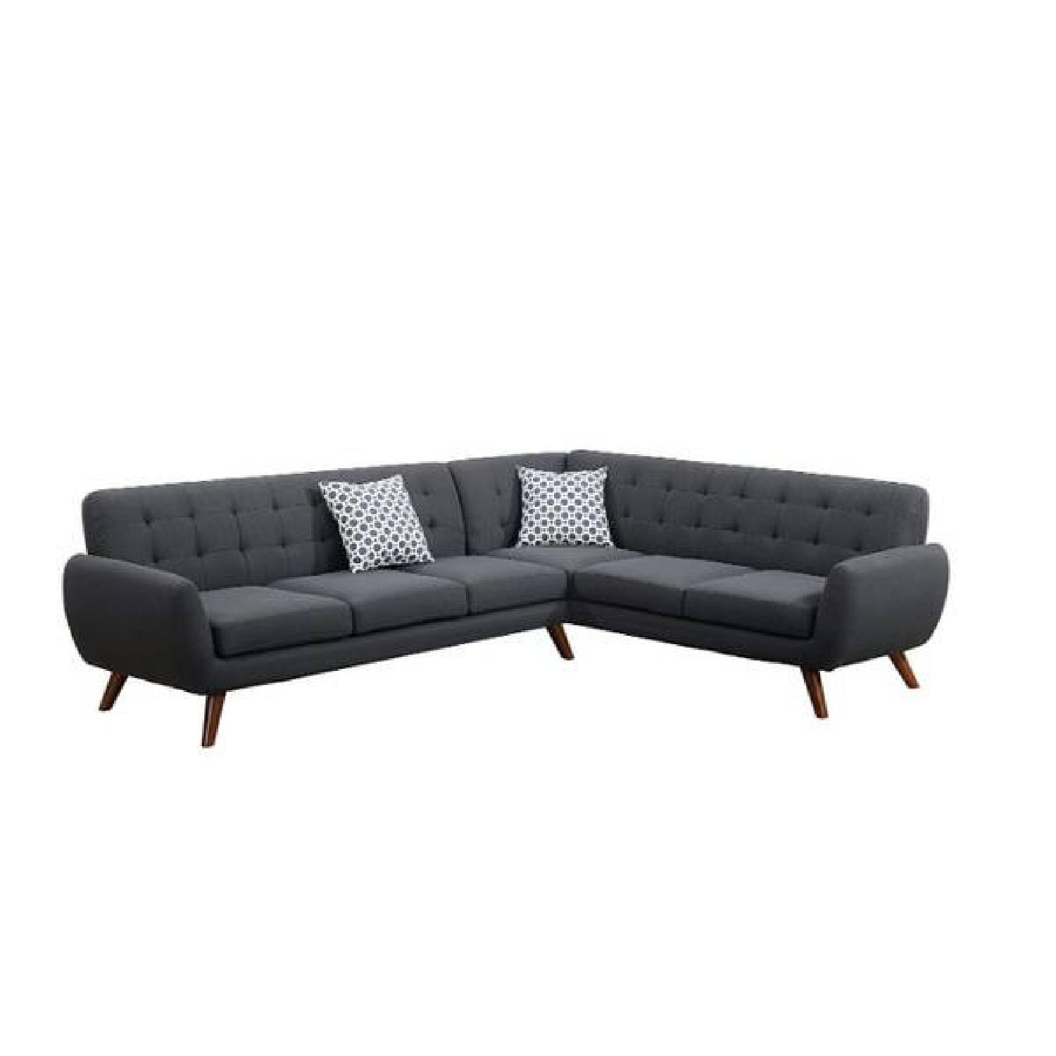 Seller's Notes:1.25 year old sectional from Wayfair purchased for $950. Is in really good shape with very minor wear and tear and has not been exposed to pets or smoke. Item Weight: Can be dissembled into 4 pieces to make moving a lot easier. Product Dimensions: Love seat wedge: 85" x 35" x 33"H Sofa: 76" x 35" x 33" Material: Polyester blend The color is Ash Black although looks like a really dark blue.