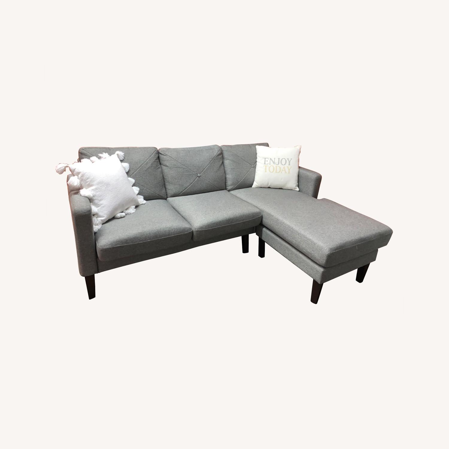 Seller's Notes:Free Delivery or Pick up! -Grey Sectional with reversible Chaise -Cushions are reversible for a modern look -Cushions are detachable and covers can be zipped off for easy cleaning - Used- Like new - No cosmetic damage, One wobbly leg, good structure - Payment is cash upon Delivery or Pick up -Message me if you’re interested or have any questions. - Throw Pillows not included. Dimensions:70 ¾” L, 33” H, 55” (CHAISE) WIDTH