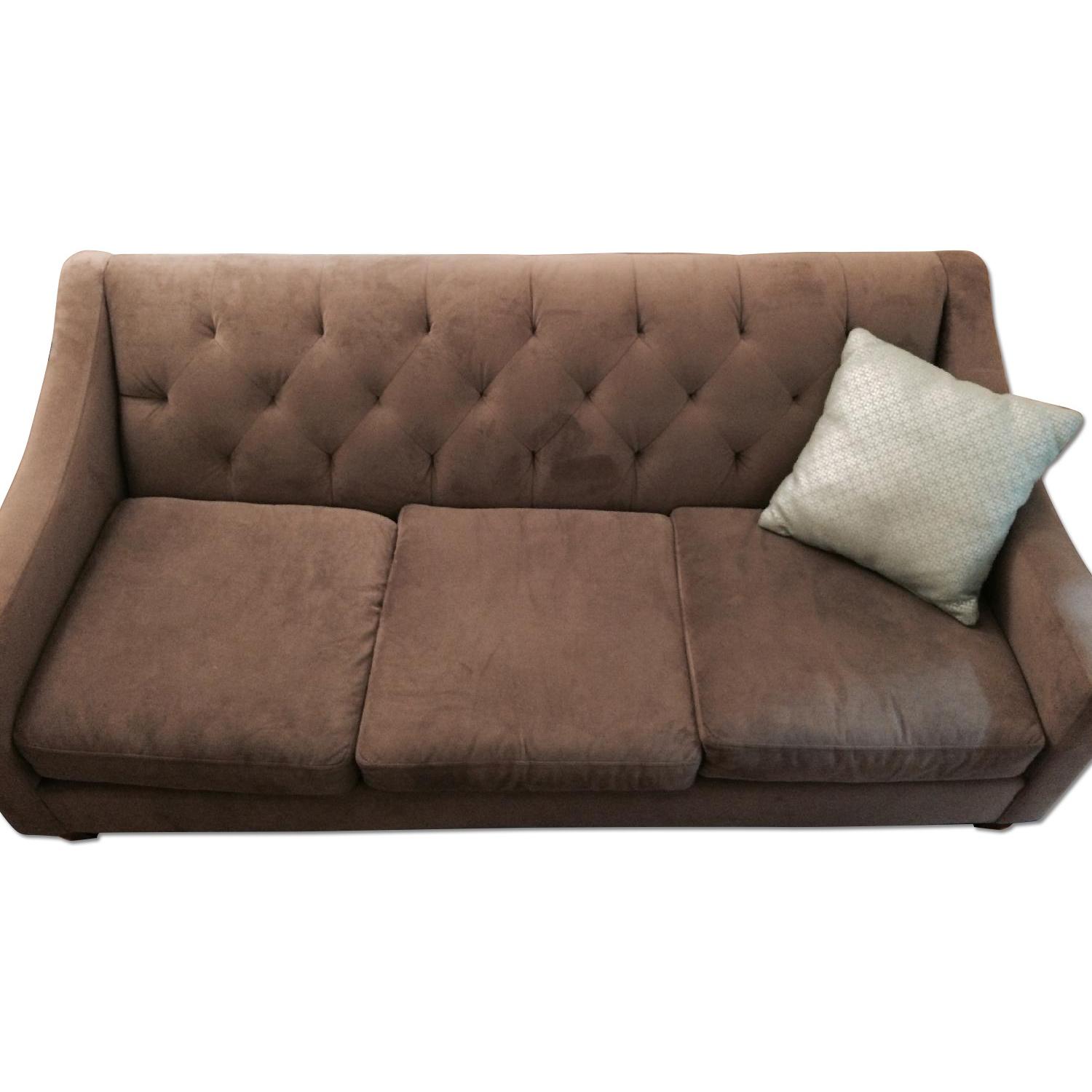 Seller's Notes:This BEAUTIFUL TUFTED SOFA has lived in my apartment for the last year. It's a MEDIUM/NATURAL GREY microsuede (very soft!) material, and super comfortable. I fell in love with it when I bought it, but I'm moving to a new place at the end of April and sadly have to sell it. It's in great condition with very minor marks and has NOT been exposed to pets or smoke--my roommate and I took great care of it! Similar tufted sofas usually sell for $800-$2,000.