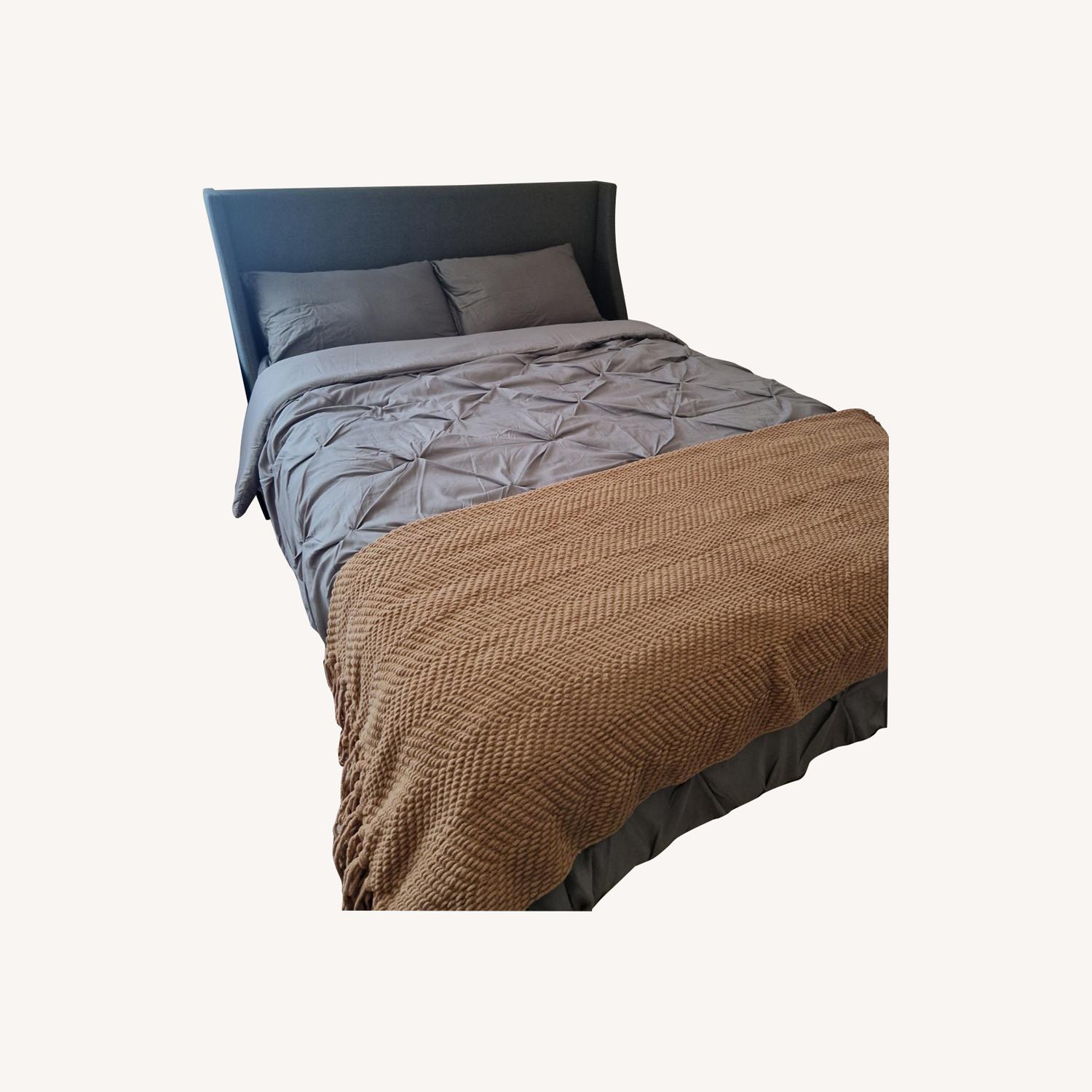 Grey Upholstered Wingback Platform Bed