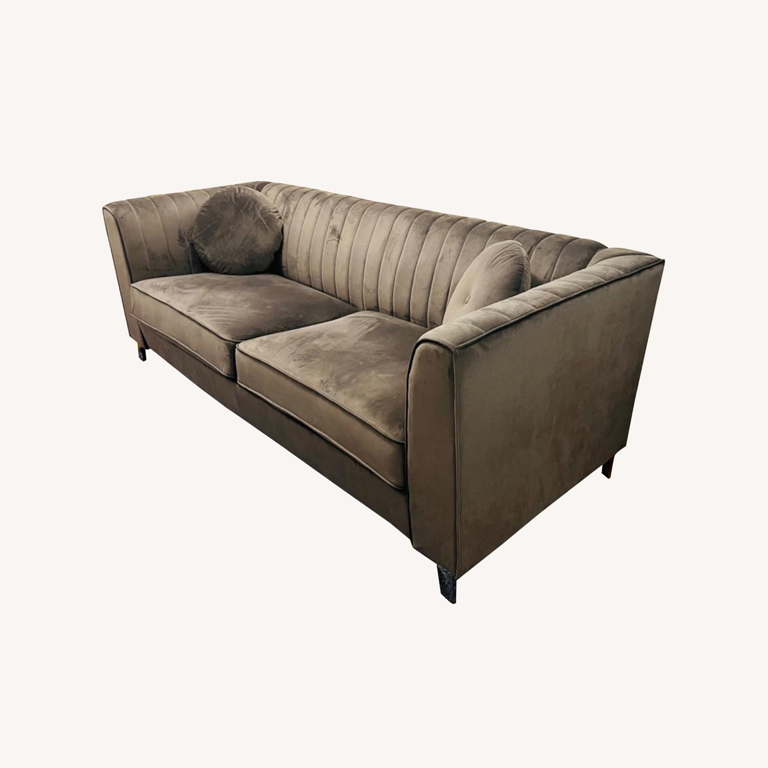 Seller's Notes:We love the soft velvet feel. It’s very sturdy cushions will withstand the test of time, but I prefer something softer. Purchased from Amazon. Easy to break down & assemble. Disclaimer: we fostered kittens in 2020-21. No kitten stains (we kept sofa covered), but this was definitely a kitten home. 1 pillow is missing it’s button. Left-hand corner had a bit of dry smudge which I rubbed off. Cushions can be washed or spot rubbed.