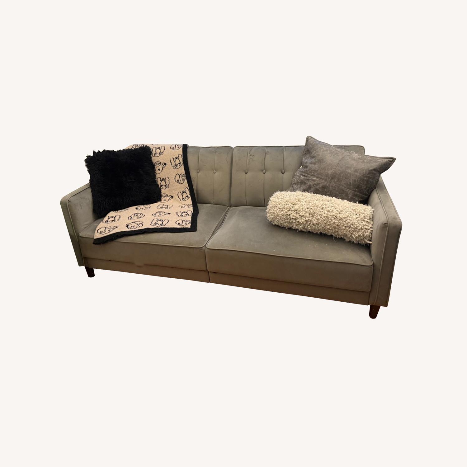 Seller's Notes:Beautiful couch that easily converts to full bed. Wood posts, square arms. Comfortable and functional! Taking cross country road trip and have to part.
