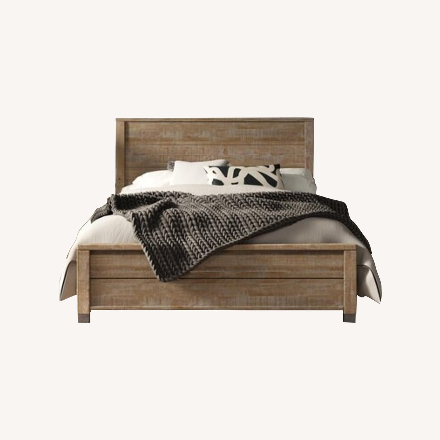 Seller's Notes:This contemporary, clean-lined bed gets a gray, rustic twist, making it the perfect pick for a cozy bedroom and modern space. Crafted from solid pine wood, its frame features a slatted design and a weathered finish. No box spring is required for this piece; instead, a slat system is included to give your mattress support and space to breathe.