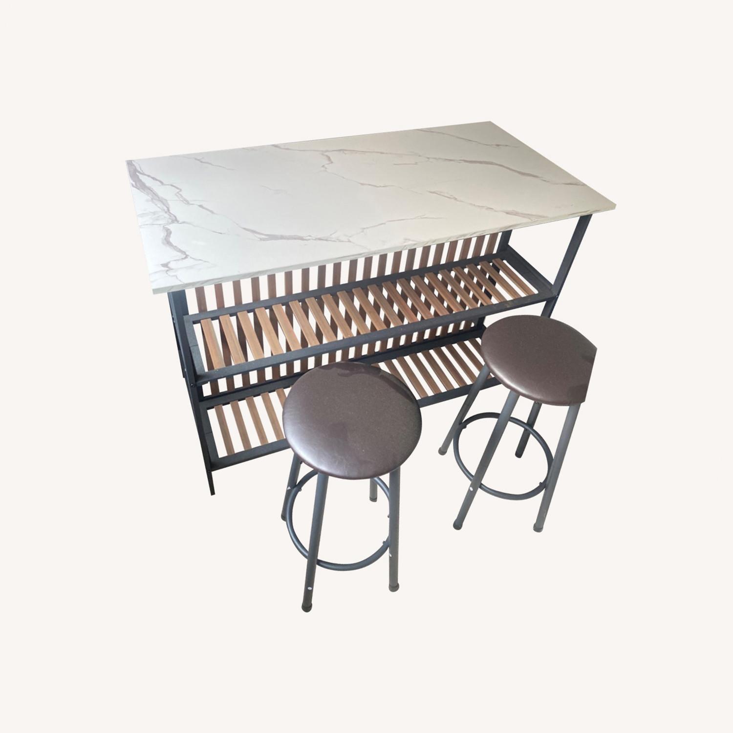 Seller's Notes:This is an island that comes with 2 bar stools. I used it for my dinning area in my previous space but currently it’s in the garage. It’s fairly new.