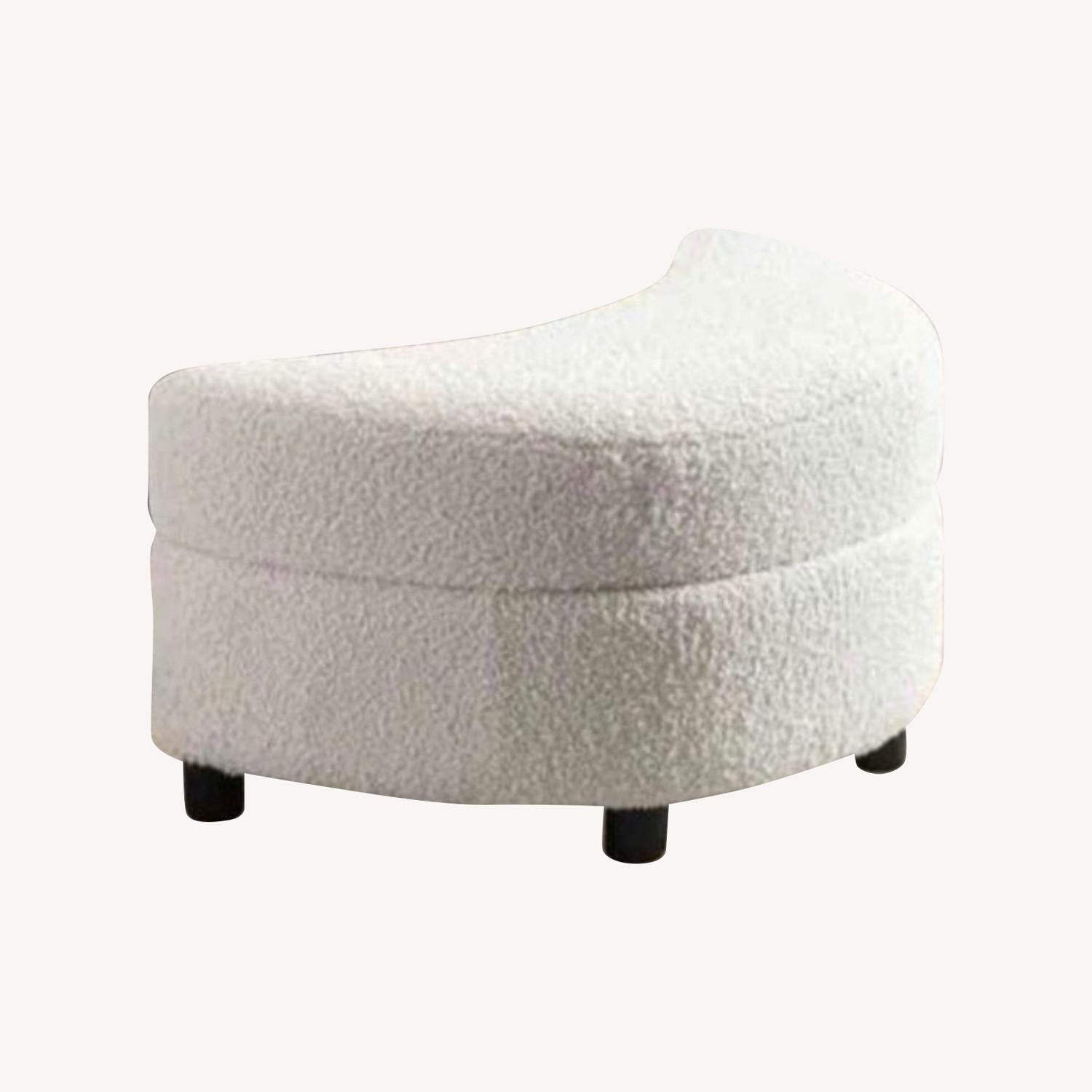 Seller's Notes:Selling because the fabric didn’t match the couch as I thought it would. It is brand new! Half moon ? shaped ottoman Price is $200+ in department stores. It is versatile, you can flip the lid for a coffee table look. Small storage. Perfect for Kids Room too!