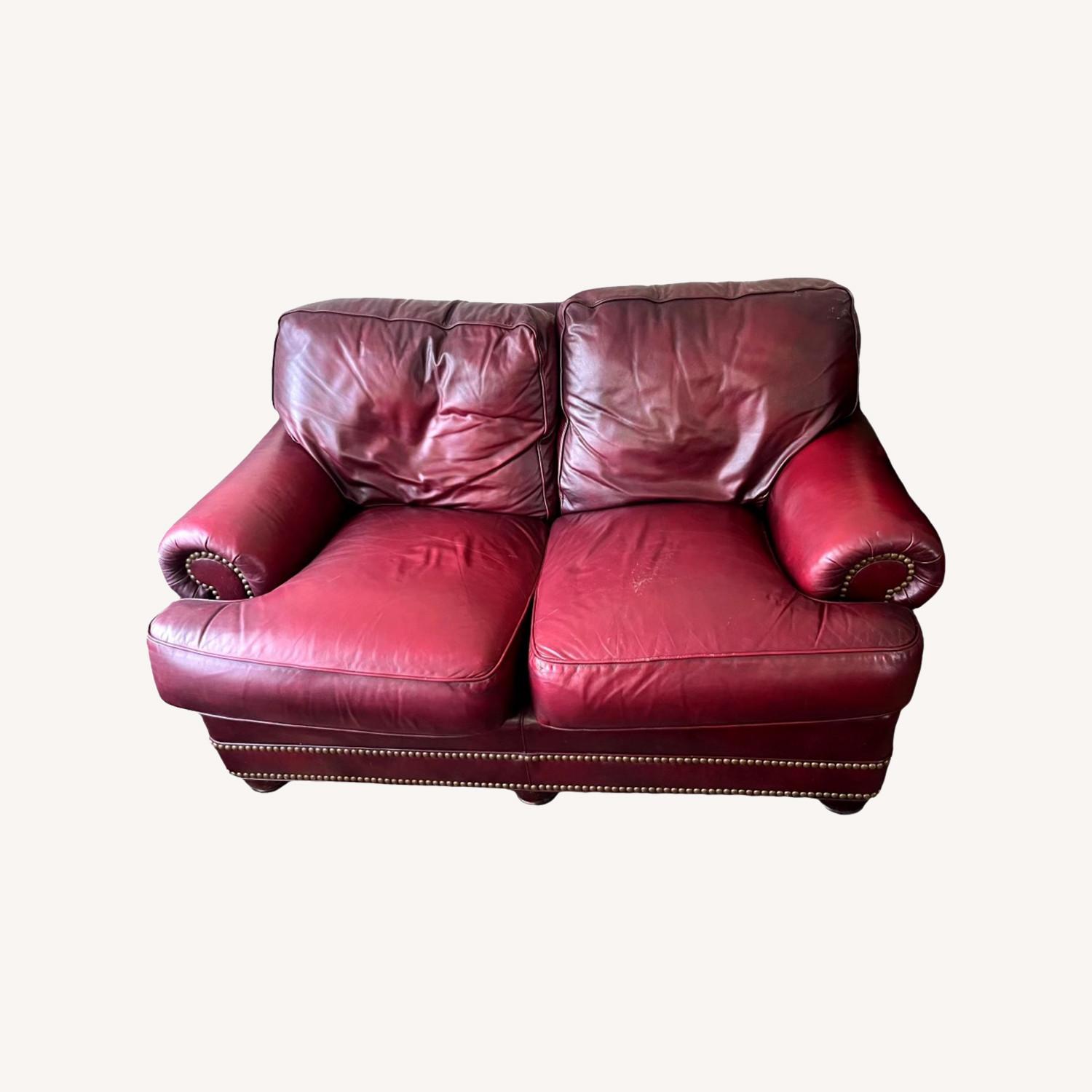 Hancock Moore Red Leather Loveseat