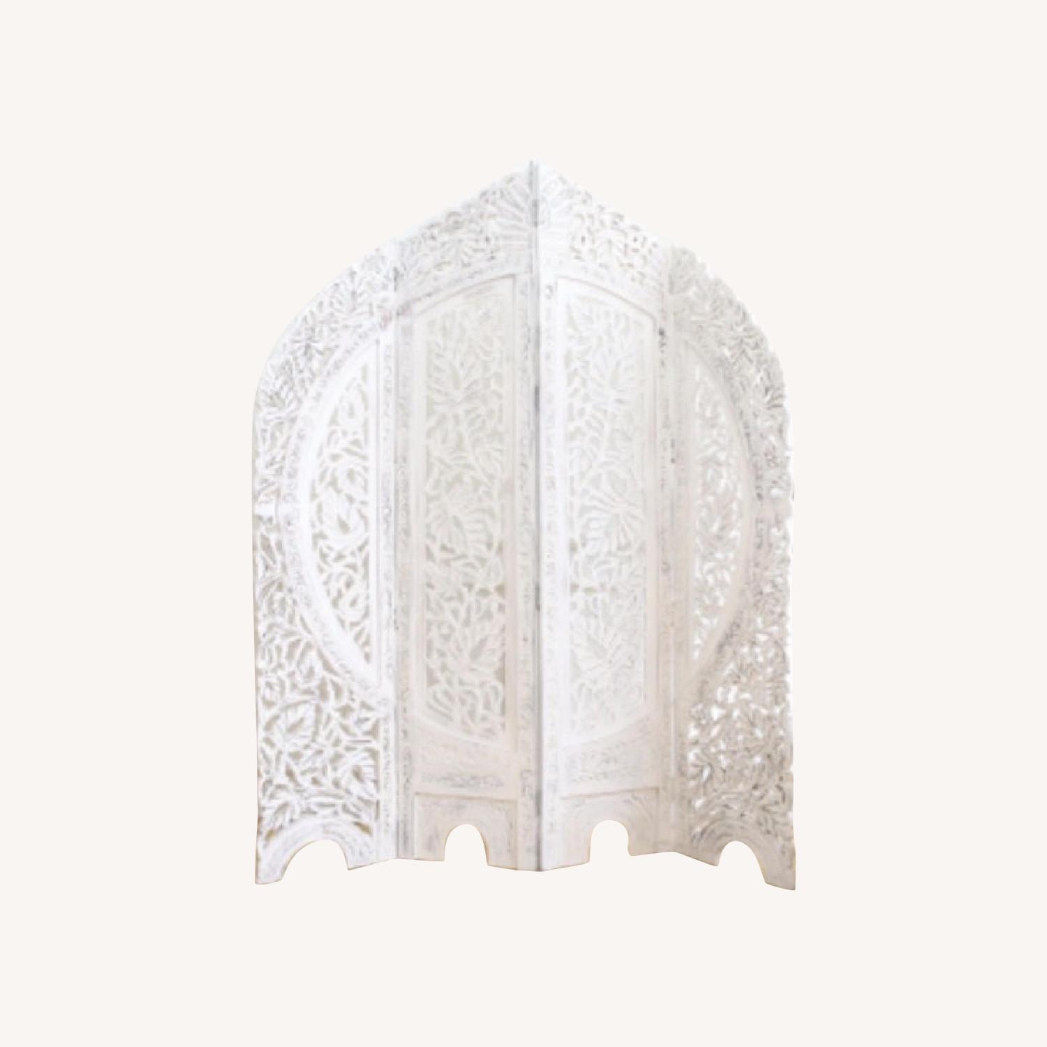 Seller's Notes:Love the versatility of this screen. It’s real wood so it’s heavy. I’ve used it as a headboard and also just decor. Fully opened Size 59”W x 1”D x 72”H Closed Size 15"W x 4"D x 72"H