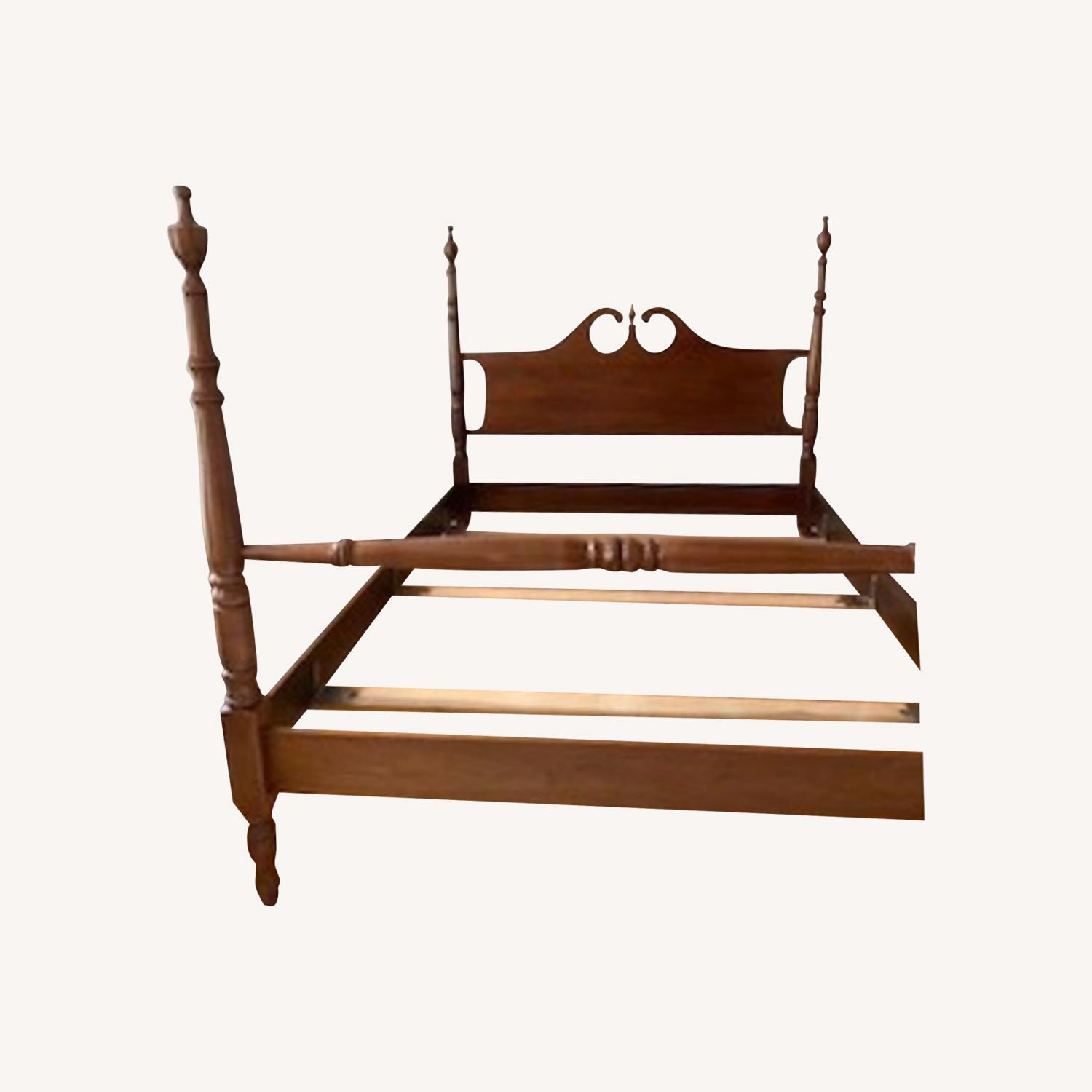 Seller's Notes:I purchased this bed about 25 years ago from EA Clore Sons, a small manufacturer of hand-crafted furniture in Virginia. The founder of the company sold a dining table to my great-grandfather more than a century ago; it is still in the family, as are pieces bought in every generation since then. The bed is solid walnut and exceptionally sturdy. There are a few minor abrasions and nicks. I tried to photograph them, but they are hard to see even in the photos. A few minutes with some dark wood stain would make them essentially invisible. If you want to see the Clore catalogue listing with the current price and a more professional picture, here is a link: https://clore.furniture/furniture/all/poster-bed-646-b/.