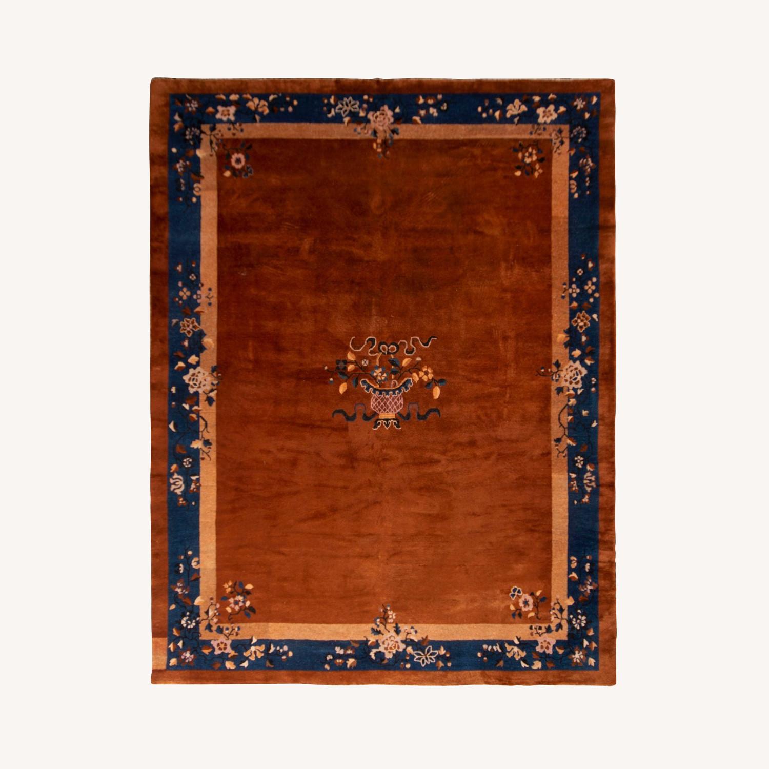 Seller's Notes:Hand knotted in wool originating from China circa 1920, this antique Art Deco rug enjoys a rich distinction among the Peking line of Rug & Kilim’s Antique & Vintage Rug collection—a marriage of open field and graceful stylistic floral motifs in a luminous pile complementing this array of beige, brown, blue, and cream hues. The Art Deco sensibility in the interception of the floral border with the open field likewise complements a natural sense of depth and elegant gravity this piece enjoys, special to the most desirable Peking rugs of this era and condition. About the Collection: Antique rugs have been in Josh’s resume since he began in the industry almost 40 years ago when he was already recognized for one of the largest oriental rug collections in the United States. Each piece in the internationally recognized volume was hand picked for rarity, and of course aesthetic and beauty, now complementing one of the widest varieties of Persian rug and Turkish rug collections with the utmost attention to individuality and care. Because of Josh’s position in the wholesale rug industry he’s been responsible for promoting a number of collections throughout history, from breathtaking signature Tabriz, Sultanabad, Kerman Lavar, Agra, and Oushak classics to the more unsung jewels of the luxury industry. Vintage has also been synonymous with who we are since our beginning, particularly for our unparalleled Kilim collection, but with the rise of Mid Century collection the term vintage carpet has become very popular—especially exciting because often times many of the vintage carpets have also been treated, washed, dyed over, sheared, and modified—and has created a very successful category. We’re especially very proud of our vintage Kilims and Turkish rugs curated for our expansive collection of both area rugs and runners alike. Rug & Kilim maintains our own facilities for cleaning and restoration exclusively for carpets we’ve sold to ensure their lasting beauty and care long after a piece leaves our collection.