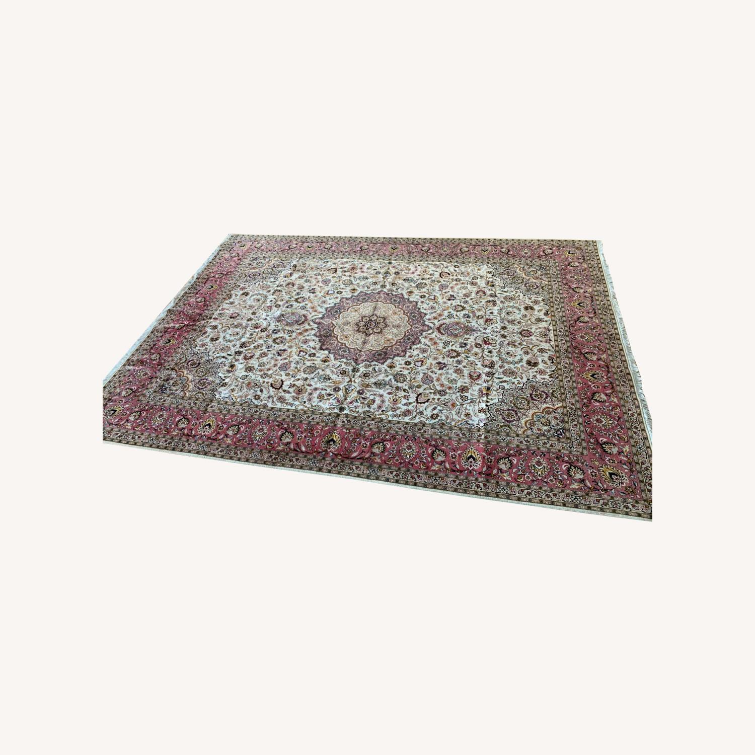 Seller's Notes:Hi there! I’m selling this gorgeous hand-knotted Persian Nain rug that I aquired from an estate sale. This rug is a blend of wool and silk so it’s super soft and luxurious. It’s a large piece, measuring 160” x 118” (that’s 13' 4" x 9' 10"), so it would be perfect for a big living room or a spacious area. Here are some details about the rug: • Knot Density: 320 KPI (Knots Per Inch) - very fine quality • Condition: Excellent, no wear or stains at all. • Leather Edging: There are finely crafted leather strips sewn along the edges of the back to help protect it. • Age: Unknown • Colors: • Cream: The background color is mostly a creamy white. • Pink: Soft pink accents in the border and floral designs. • Purple/Lavender: Different shades of purple and lavender in the patterns. • Yellow/Gold: Some yellow or gold highlights, especially in the center. • Blue: Light blue details in the floral designs. • Brown: A few darker brown or beige tones here and there. • Teal: Tiny touches of teal in some of the floral patterns. I’m located near NYC so it can be picked up. I cannot ship it. Asking Price: $10,000 (but I’m open to offers) Estimated retail price is $20,000 - $25,000 This rug is really special, and I’d love for it to go to a good home. If you’re interested, feel free to reach out! Thanks for looking!