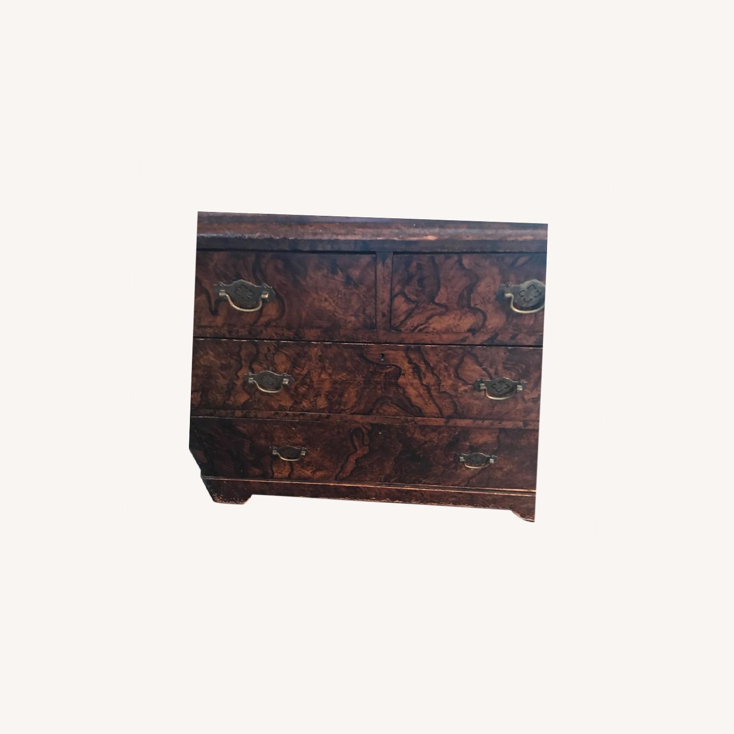 Seller's Notes:Approx 40 year old painted pine chest of drawers painted decorative tortoise shell. Great brass pulls and very functional.